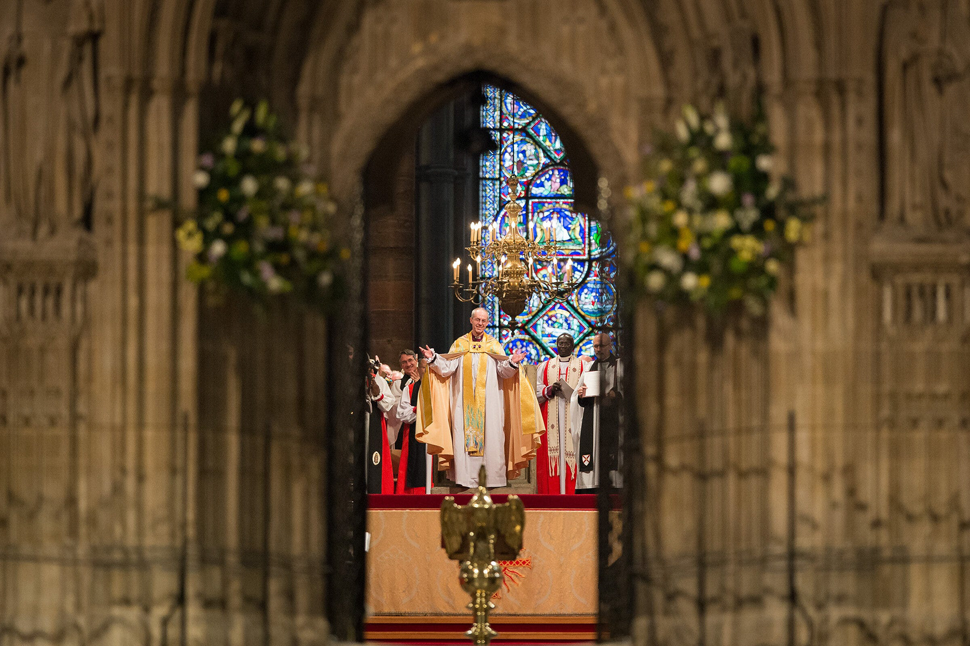 Similar to the job above, I was covering the enthronement of the new Archbishop of Canterbury Justin Welby in Canterbury Cathedral and had assumed that once he had passed me in the doorway at the very start of the ceremony, there would be little for me to actually do until he left at the end of the ceremony. As it turned out, I found that on my 400mm lens, I could move across into the doorway and shoot right down the length of the Cathedral. I then just had to wait for an interesting shape to appear and, like some kind of holy miracle, it did. Praise him.