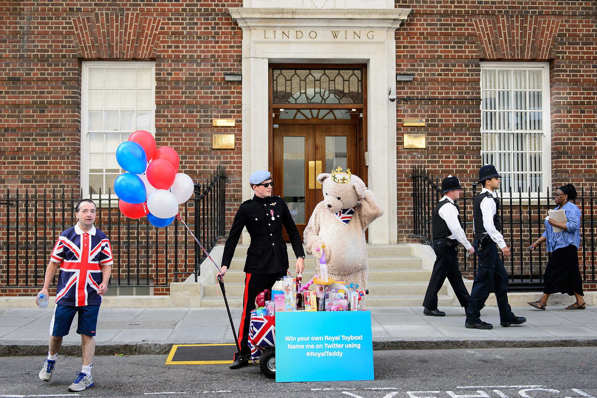 Some might assume I’d have included a shot of Mr and Mrs Cambridge and their sprog in my round up, but these are my favourites so nyehhh. This moment came during one of the many days spent waiting outside the Lindo Wing for news of... well... anything. As a look-a-like Prince Harry and a giant teddy bear posed outside the doors of the hospital with a trolley of children’s toys, one of the resident Royal “supporters” decided to wander into shot. Meanwhile, one of the ever-present police patrols happened to pass by, as a member of the hospital staff just tried to get on with her day. In that one moment, it seemed that every element of the story of the “Great Kate Wait” came together.