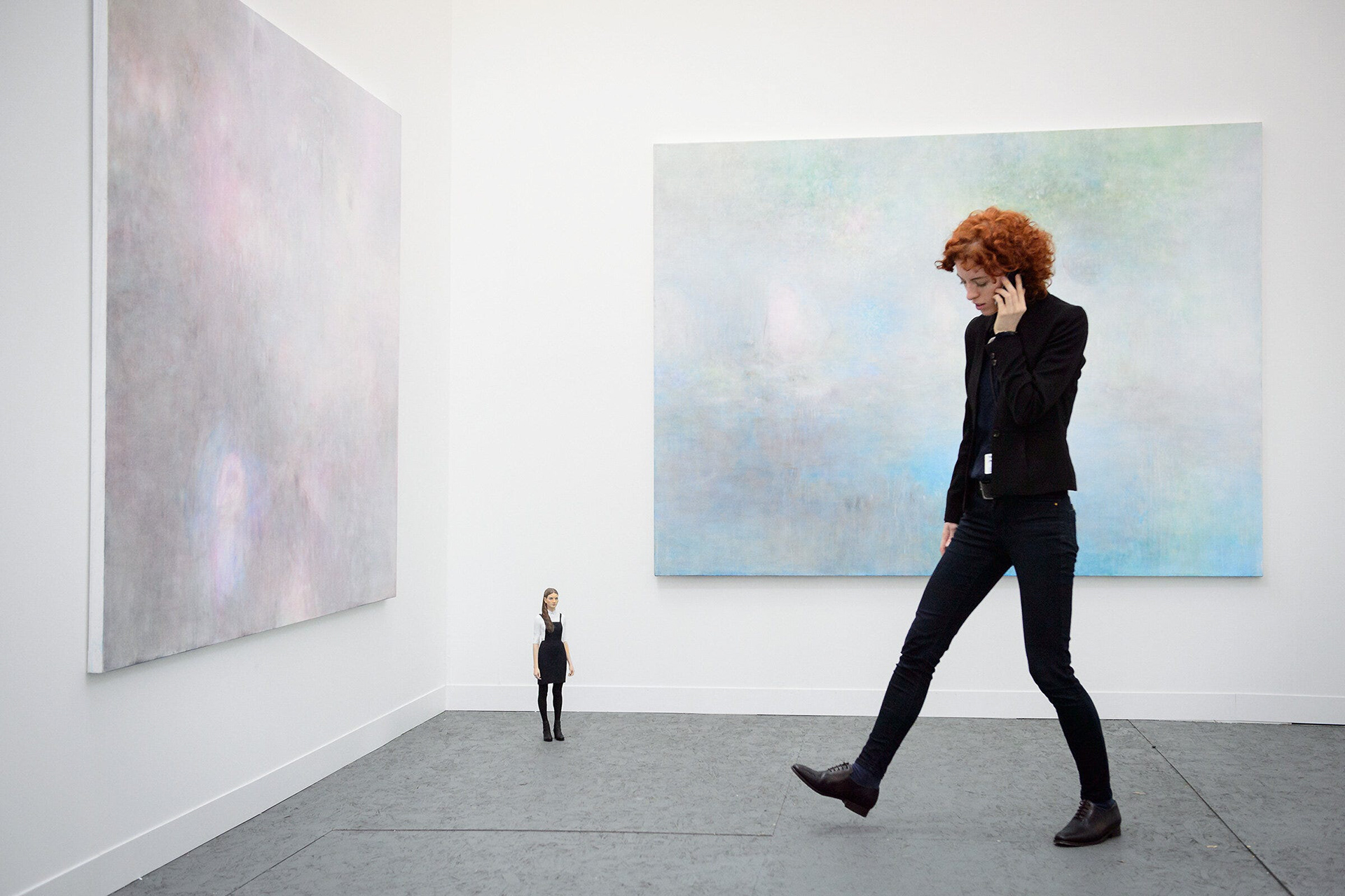 Over at the Frieze Art Fair, I was taken by this gallery representative as she strode around her display, holding a heated conversation on the phone.