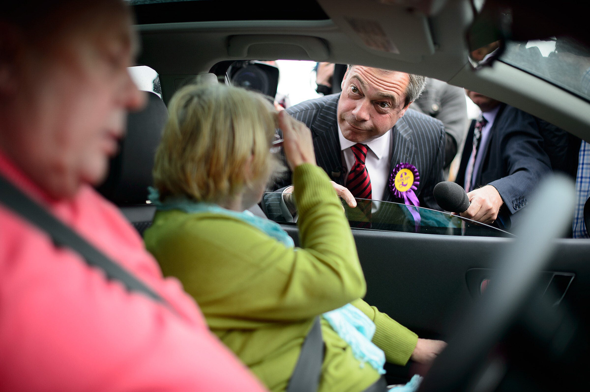 Covering the Conservative Party Conference in Manchester, one of the points that everyone was focusing on was the role of UKIP in the week’s events. Despite allegedly being banned from appearing at sanctioned events, party leader Nigel Farage was in town to try to grab some headlines (and voters) from the Tories. Hearing rumours of a visit to an area that was facing a local election, I dashed over there to find a handful of media types awaiting the UKIP Express. On his arrival, he got straight into the grip and grin, leaping on every passing person or pet for an impromptu discussion on immigration. With the media pack swelling, we were soon large enough to be stopping cars that passed, including this couple who soon found themselves being grilled on their political beliefs and voting habits, while being monstered from all sides by photographers and TV crews. George A Romero, eat your heart out.