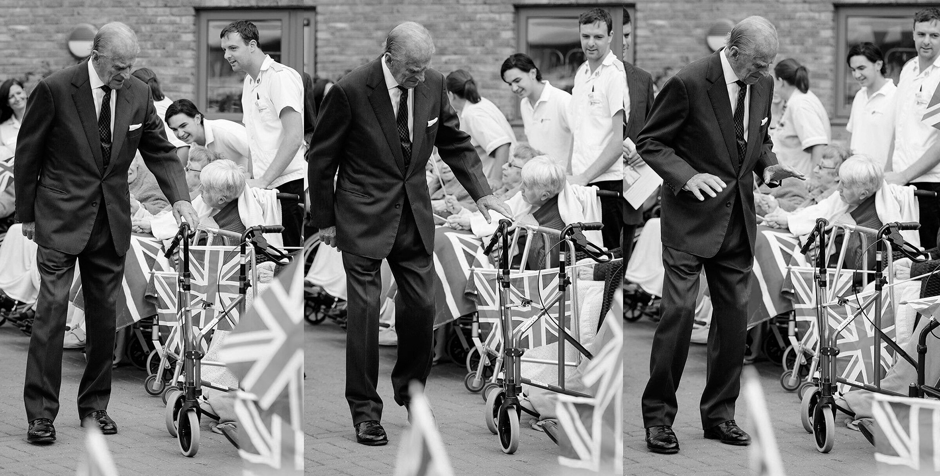 Prince Philip was returning to work with an official visit to a care home in Norfolk and I had been assigned the role of solo rota photographer. With Phil’s unpredictability, it can swing either way, producing heaps of images or nothing at all. On the day, I found a rich seam of Greek Gold with a comment about getting extra points for knocking over young children with exercise balls, a massive look of shock when faced with a troupe of dancing girls and this moment where the Prince idly handled a zimmer frame as he tried to work out what it was, before recoiling in horror as he realised. I fear he may think that ageing is contagious.