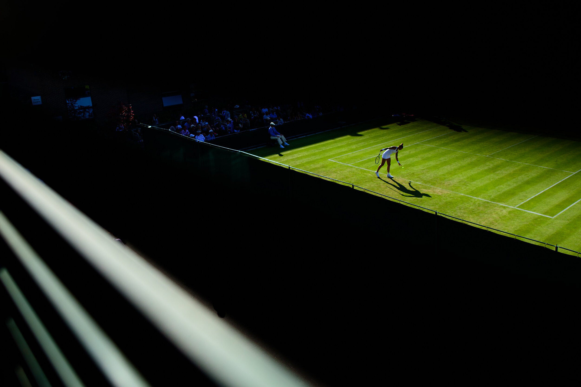 Still under clear skies, Wimbledon rolled around again and the sausage factory that is tennis coverage began. While many of the days prove to be a series of similar angles and faces, it was good to find an position that I’d never seen before. The late-afternoon light was perfect to create a striking shot of a match in progress.