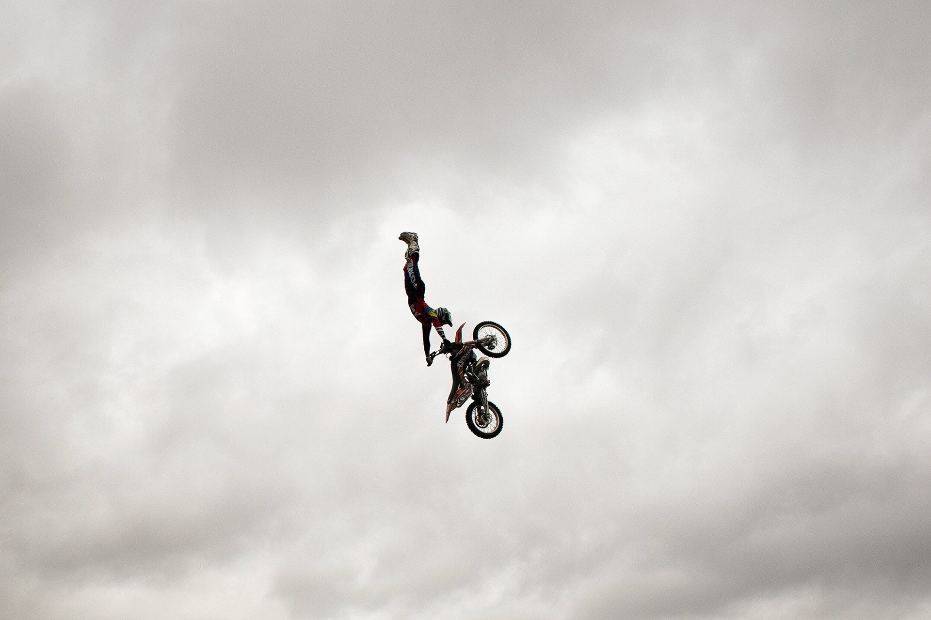 In June, I covered a very early preview for the “Night of Jumps” event at the o2 arena. The main idea of the photocall was to apparently recreate a cringe-worthy 1980s photocall, but with no sense of irony. This involved having women in skin-tight Lycra standing next to heavily-branded cars while two men jumped their bikes around. Avoiding this horrendous eyesore of an idea, I instead played with either making the bikes appear to leap the Canary Wharf financial district or just removing as much context as possible.