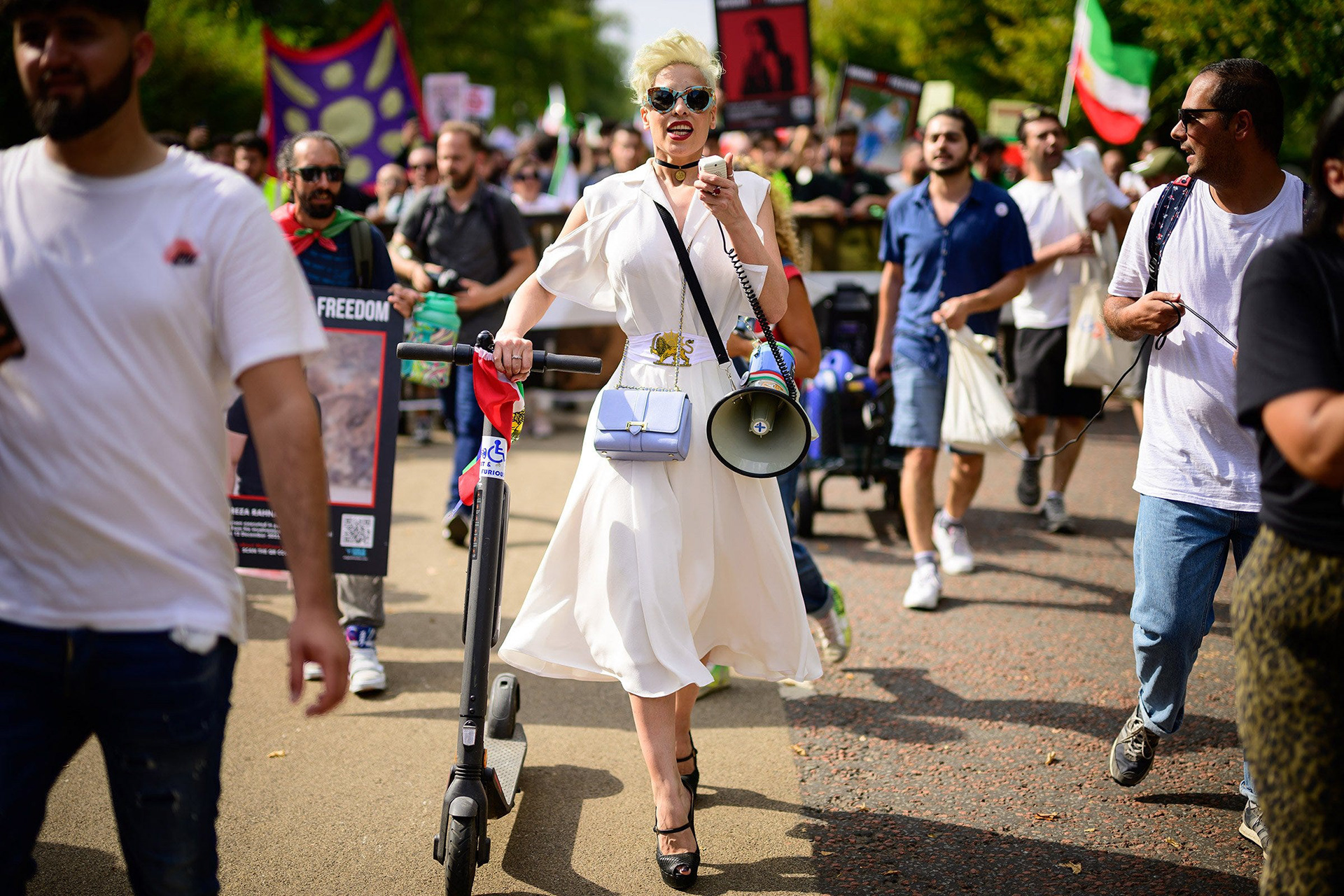 Out on the streets, protests such as this one against the Iranian Islamic Regime called for less violence in the world.