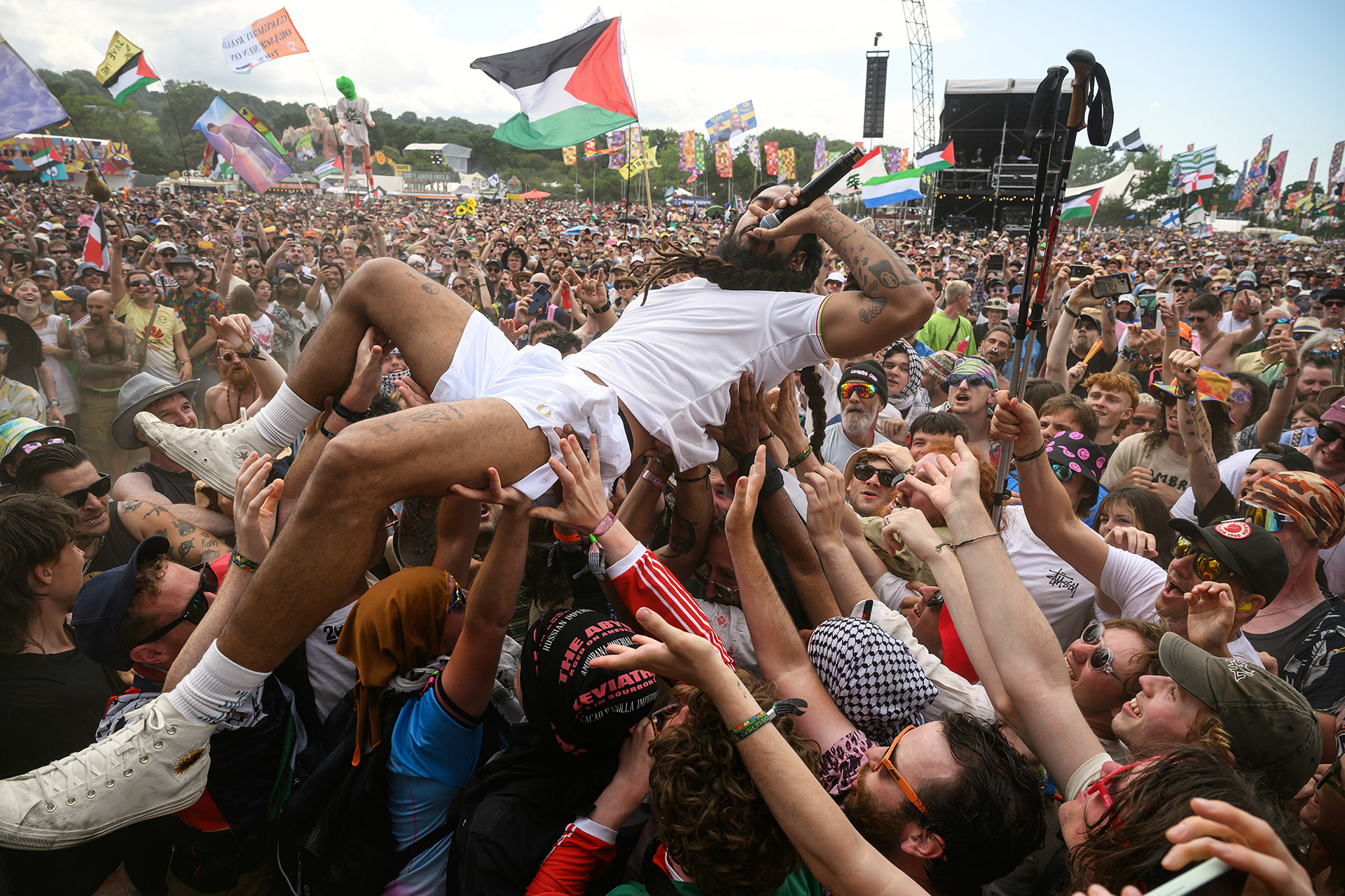The daytime people were the ones making the headlines though. Waiting to cover Kneecap, I decided to shoot the previous group, Bob Vylan, as I remember them being good in previous years. After shooting the first three songs and heading to the waiting area by the side of the stage, lead singer Bobby Vylan started his now famous chant of “Death to the I.D.F.” and we suddenly had a news story.