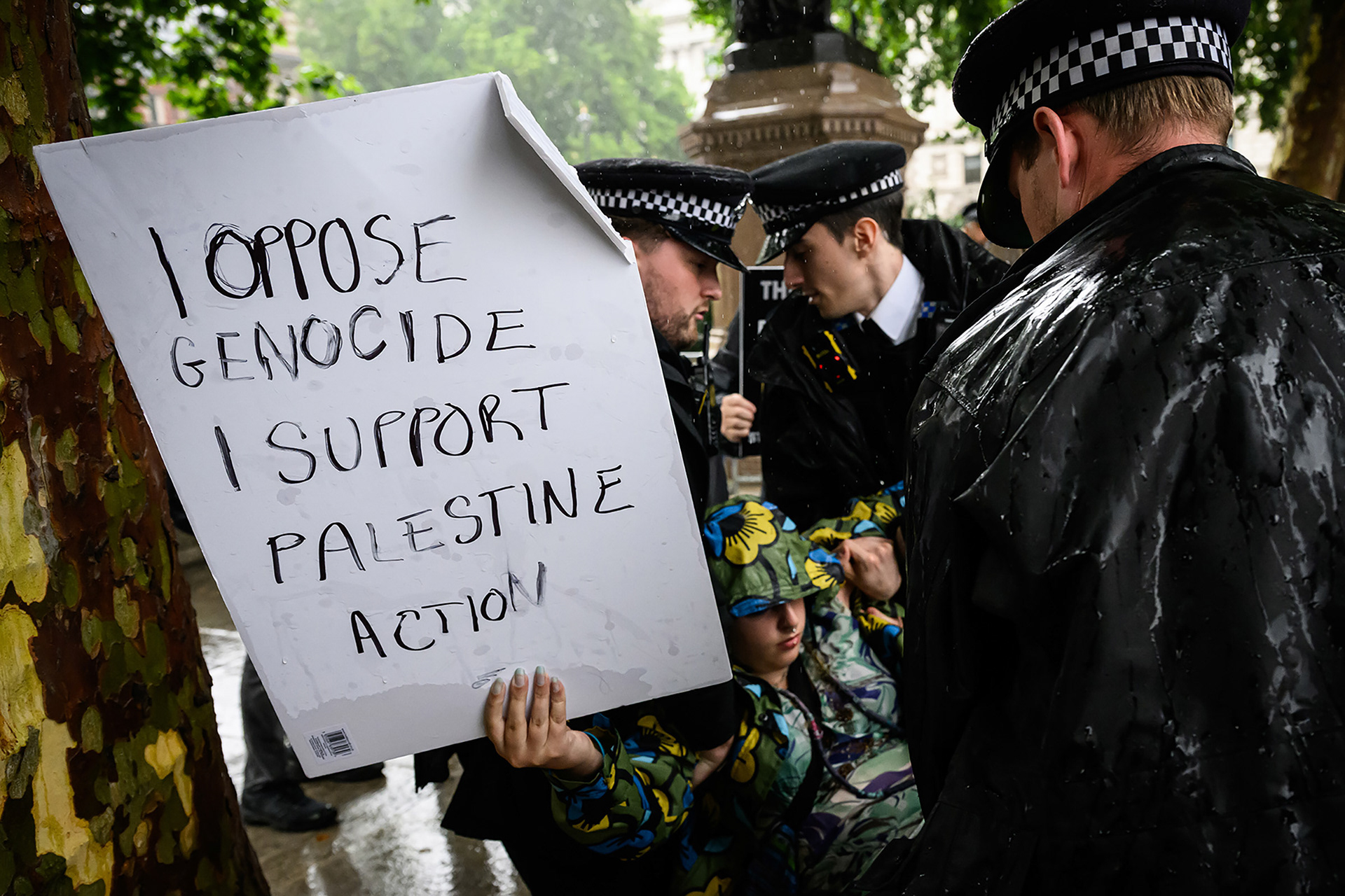 The ongoing arrests of protestors holding “I Support Palestine Action” placards in Parliament Square produced some of the most bizarre visuals of the year.