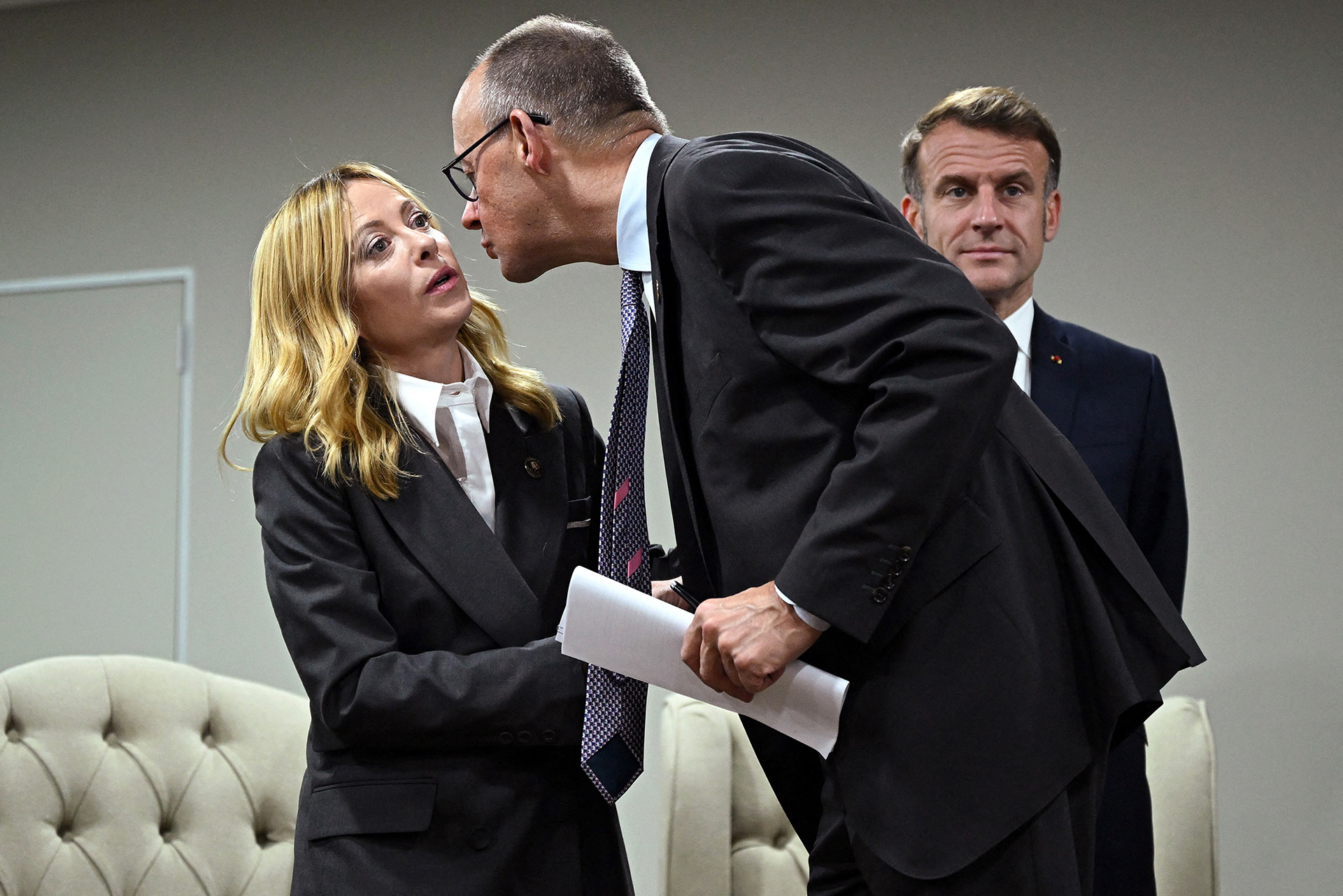 My final addition of the year was one of those moments that came in the middle of a day of scrambling, crawling, sweating and hunger, covering a lightning speed trip to South Africa for the G20 summit. As I’ve written about before, the best moments photographically nearly always come from the seconds before or after “the picture” is due to happen. The looming presence of French President Emmanuel Macron as German Chancellor Friedrich Merz reaches in to kiss Italian Prime Minister Giorgia Meloni was one such example.