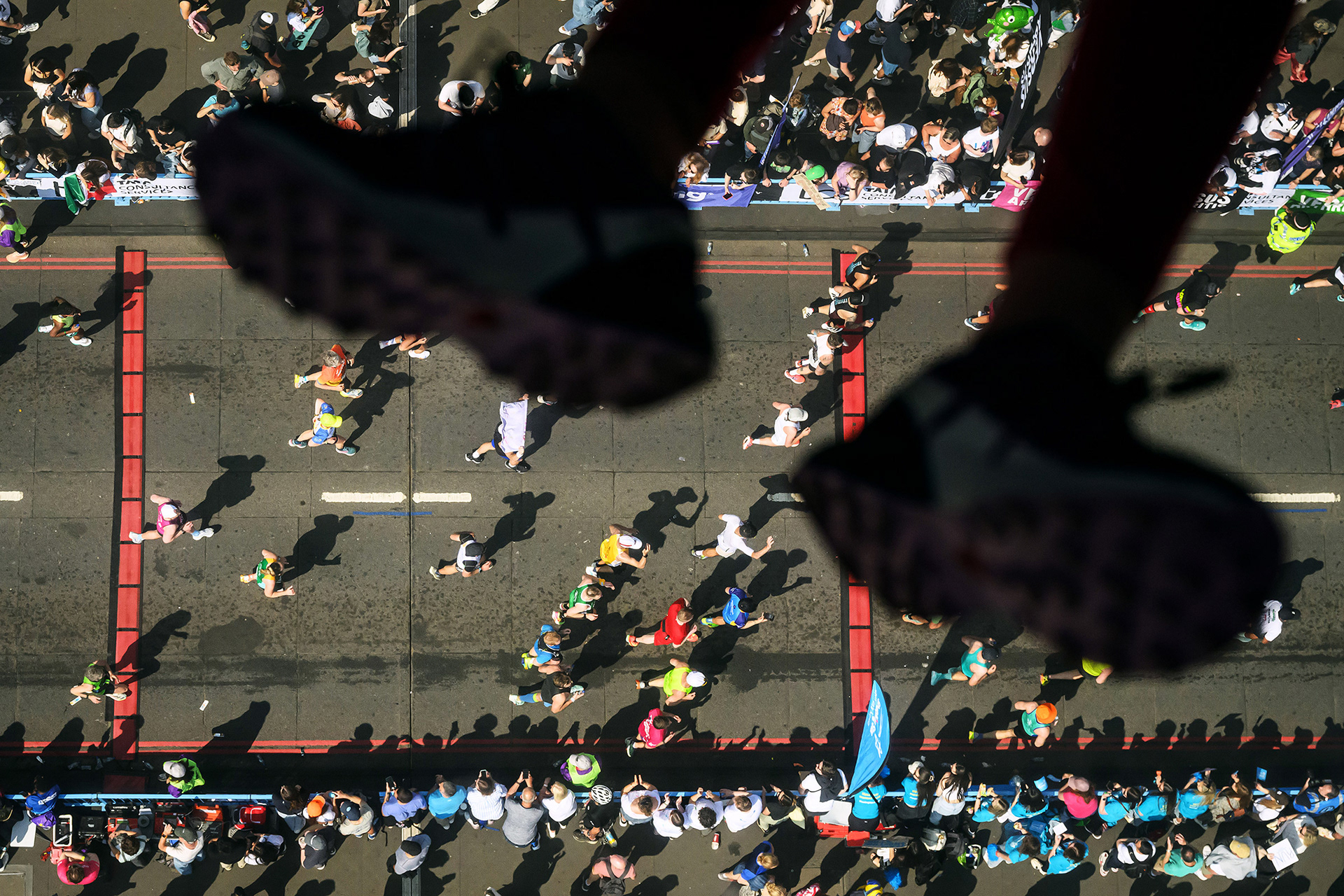 I’ve covered the London Marathon many times over the years so wanted to find something to make it a little different. Thankfully, a bored child laying on the glass floor of Tower Bridge gave it that tweak that I was after.