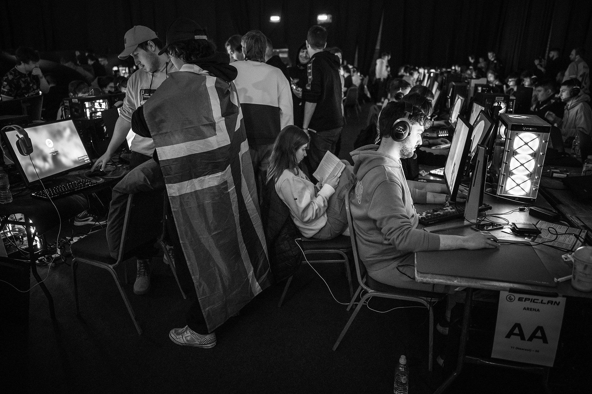 For those who haven’t attended one of these events before, it’s quite a shock when you first enter the main arena to find a sports hall lit only with the glow of screens and illuminated fans and keyboards, the background hum of so many gaming computers interrupted by sporadic testosterone-fueled obscenities yelled across the room as a clan defeats a rival team.