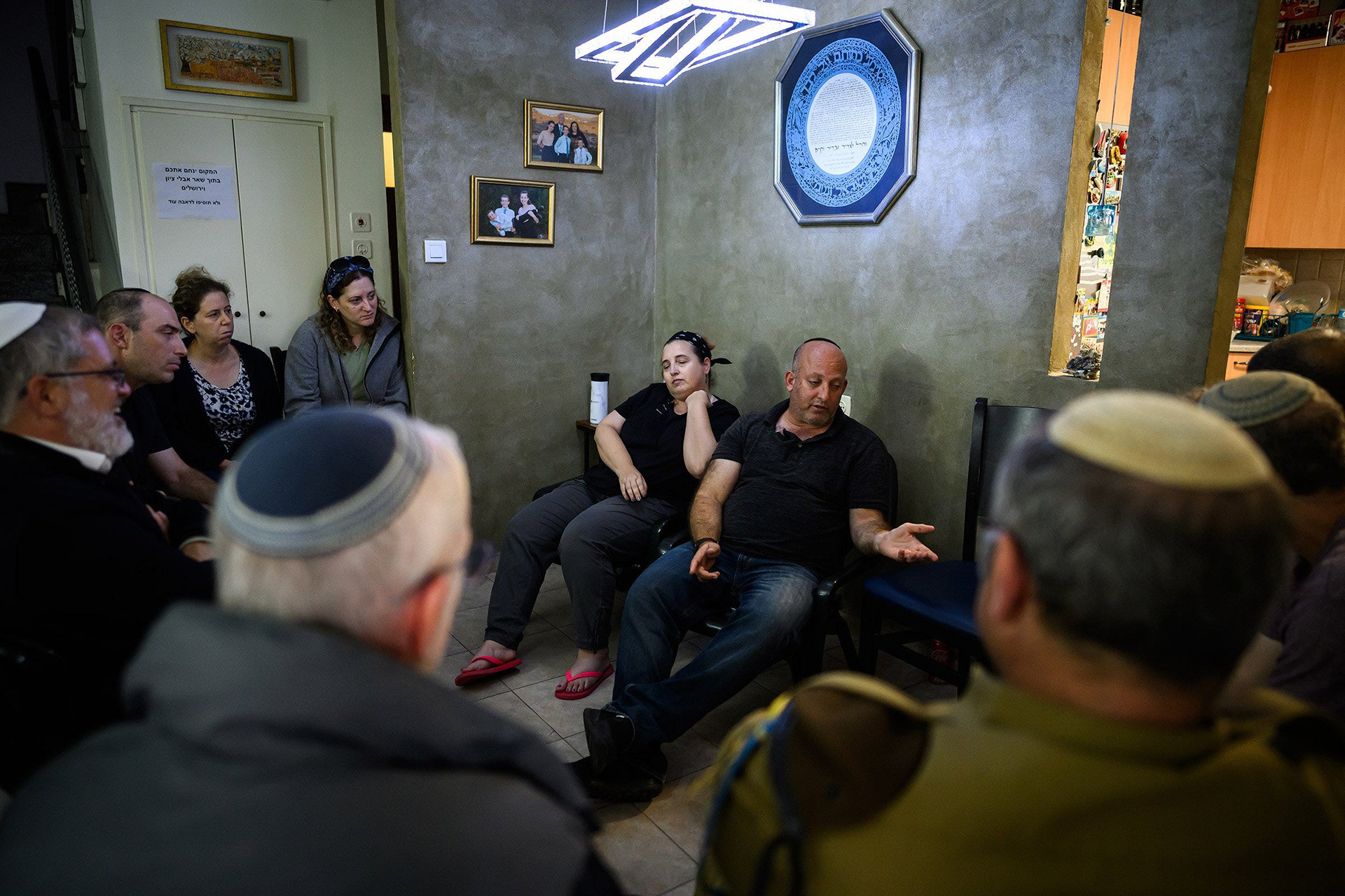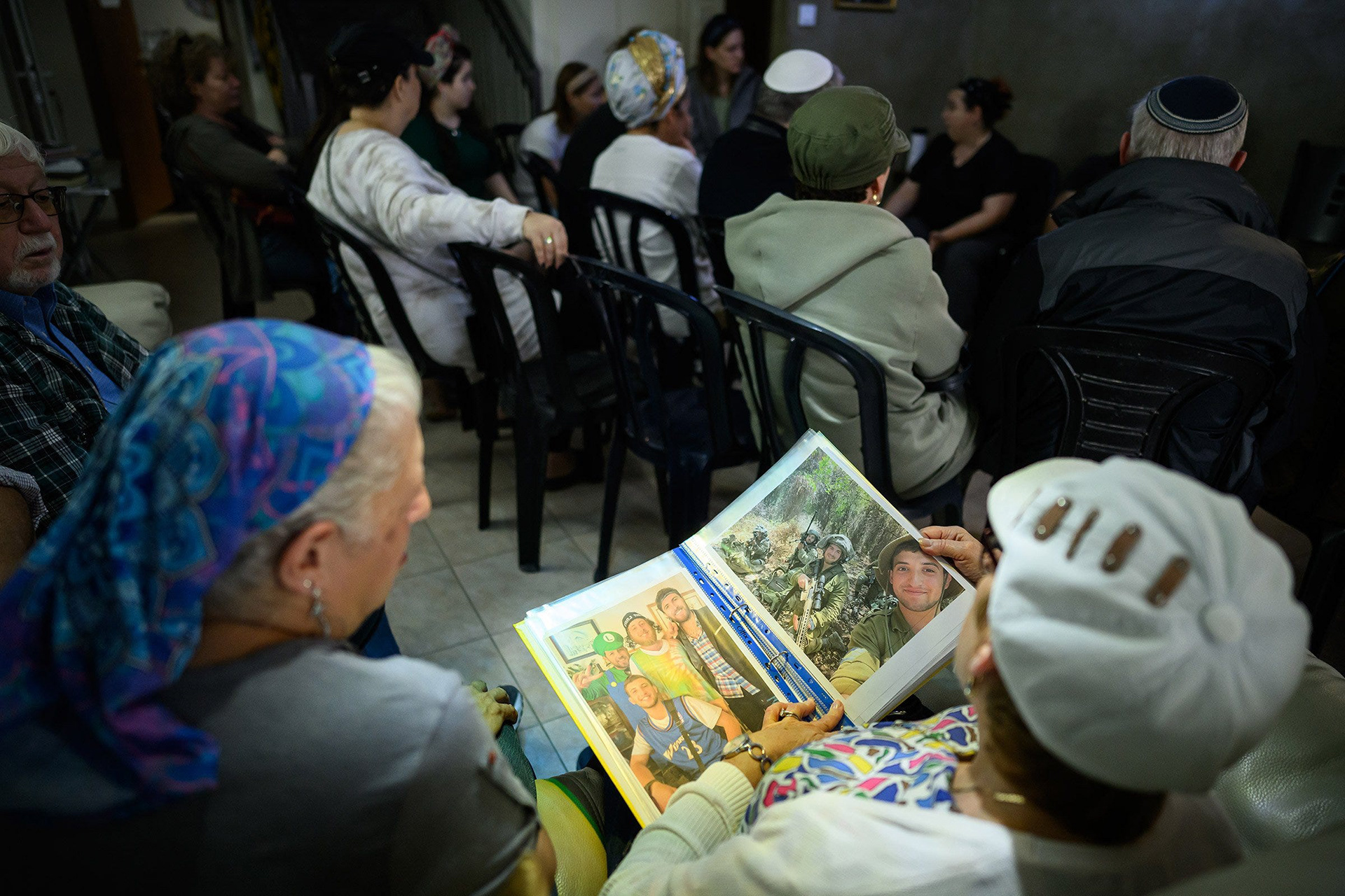 Through the exceptional kindness and trust of the Weiser family, I was allowed to witness a family sitting shiva for their son Roey, who was killed in action at the Kerem Shalom border crossing on October 7. The traditional gathering sees a parent, spouse, sibling or child mourn for seven days, while friends and family pay their respects. Seated on chairs lower than the others in the room, those in mourning are surrounded by a flow of visitors, who enter in silence, allowing the grieving family to dictate their needs through conversation, silence or the sharing of memories. It is the family’s loss so they decide how it should be observed.