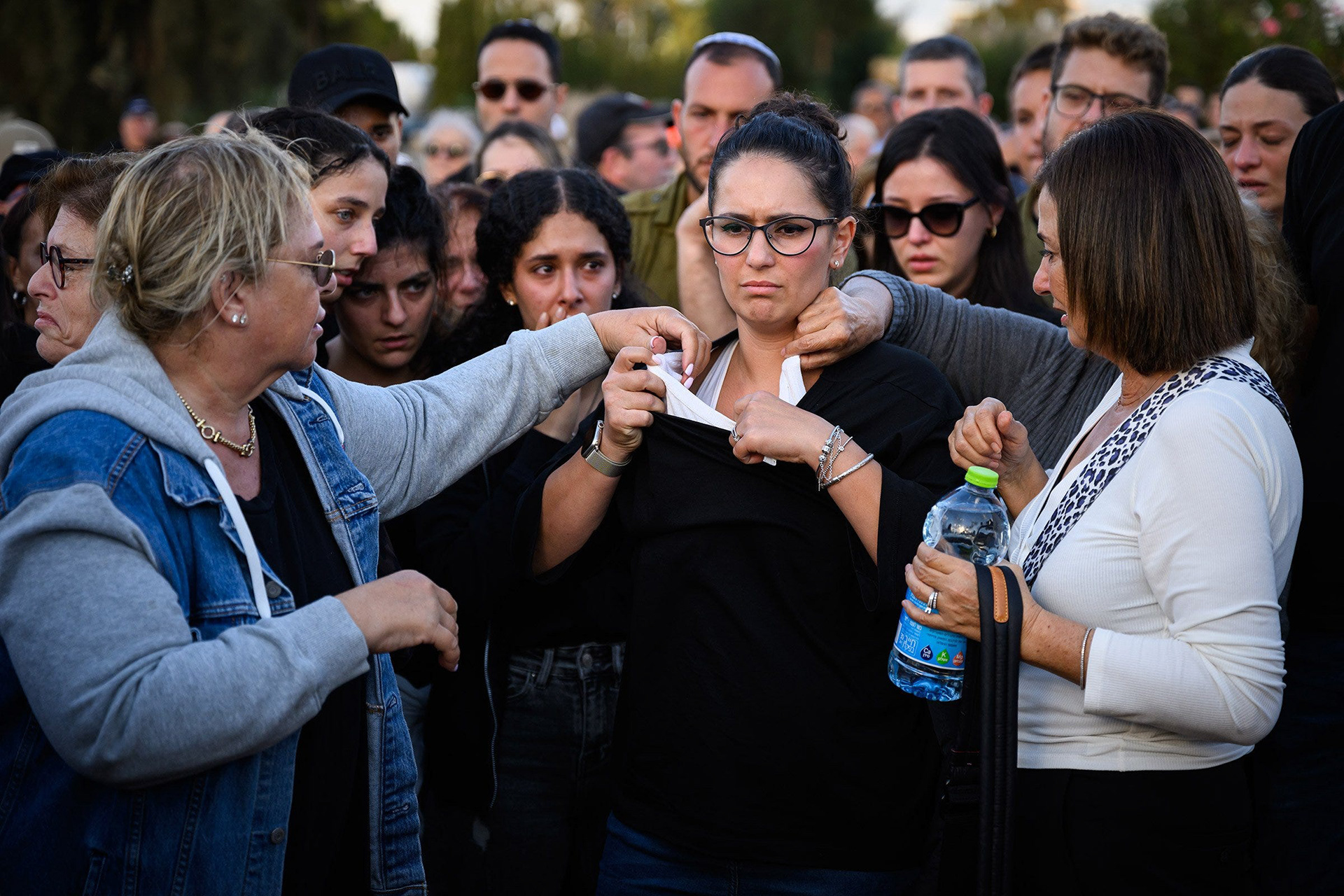 Later in the day, the funeral was held for Peruvian-Israeli civilian Dr. Daniel Ludmir, who had been killed by Hamas fighters while trying to save the lives of those injured on October 7. At the graveside, a close relation observed the tradition of Kriah, with friends cutting her clothes before she tore it, symbolising her state of mourning.
