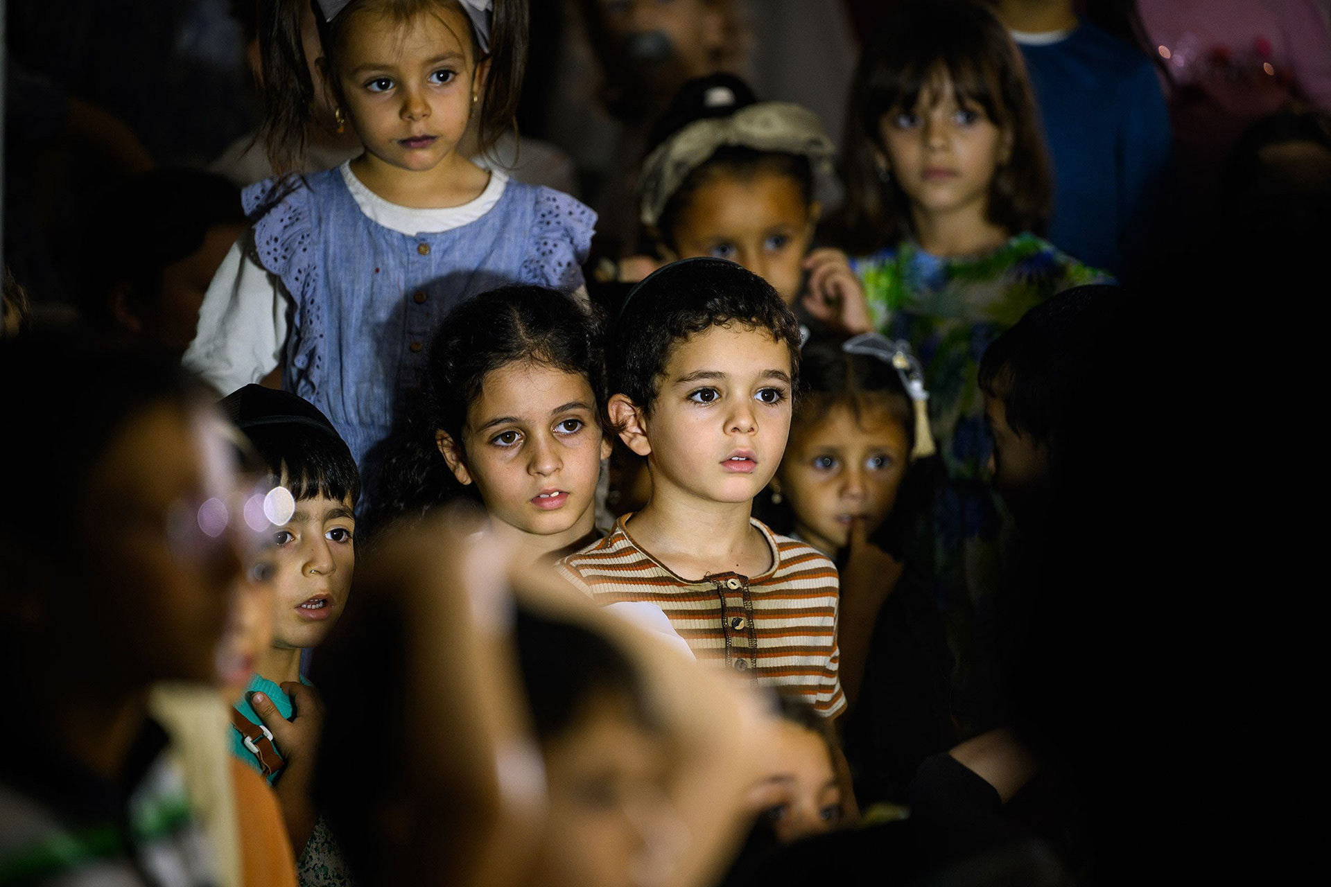Cruising through the ultra-Orthodox area of Bnai Brak, a snippet of conversation with a passer-by is all that it took for my driver to follow a hunch and find a nearby pop-up centre for internally displaced people. Providing food, clothes, toys, information and support, the much-overlooked commodity of distraction through entertainment was to be found on the third floor, with a puppet show. Performing to a packed room of captivated young faces, the Talmudic story of Rabbi Avika had the children spellbound.