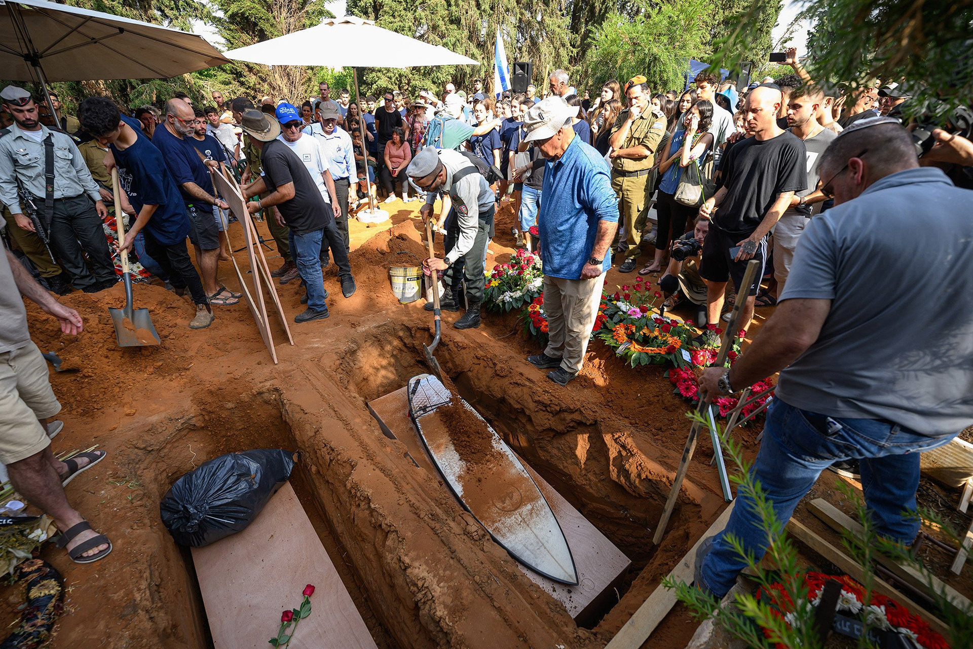Due to the stories that I’ve covered, I've left a number of countries recently with an increased cultural knowledge around how people process death. Like the multiple daily funerals in Ukraine last year, I've come to know some basics on what to expect from funerals in Israel, which is why seeing a surfboard buried with Carmel Becher during the joint funeral with his mother Dana made an already sad occasion so heart-wrenching. His father witnessed the murder of both his wife and son, and was, like many, shot in the legs to prevent him from escaping. He has since had one removed.