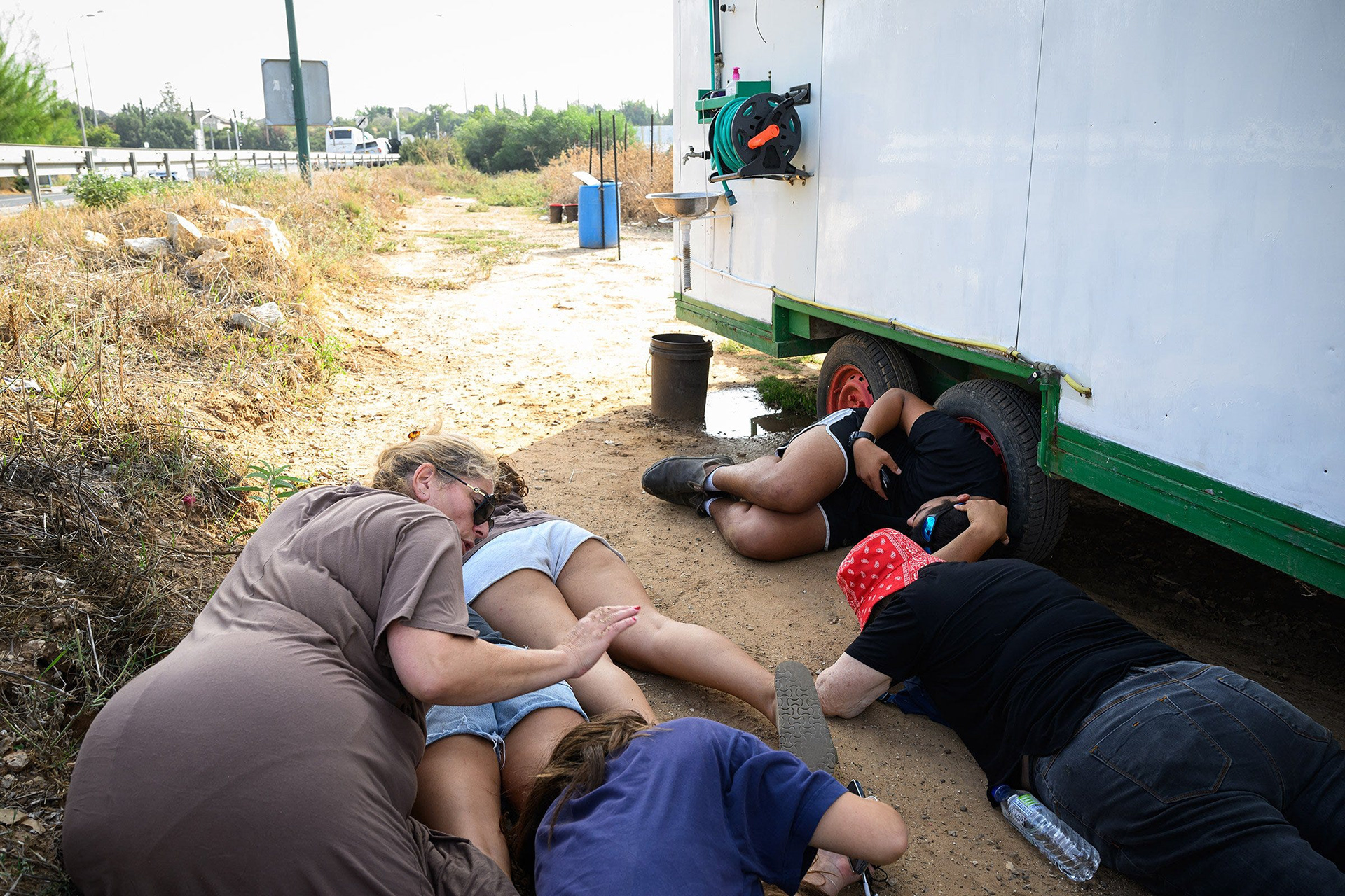 An unexpected crack and rush of rocket fire sends everyone to the ground, looking around, trying to work out the confusing order to the sounds that they heard. An outgoing Israeli position has fired for the first time from very close nearby, leaving everyone a little more alert.