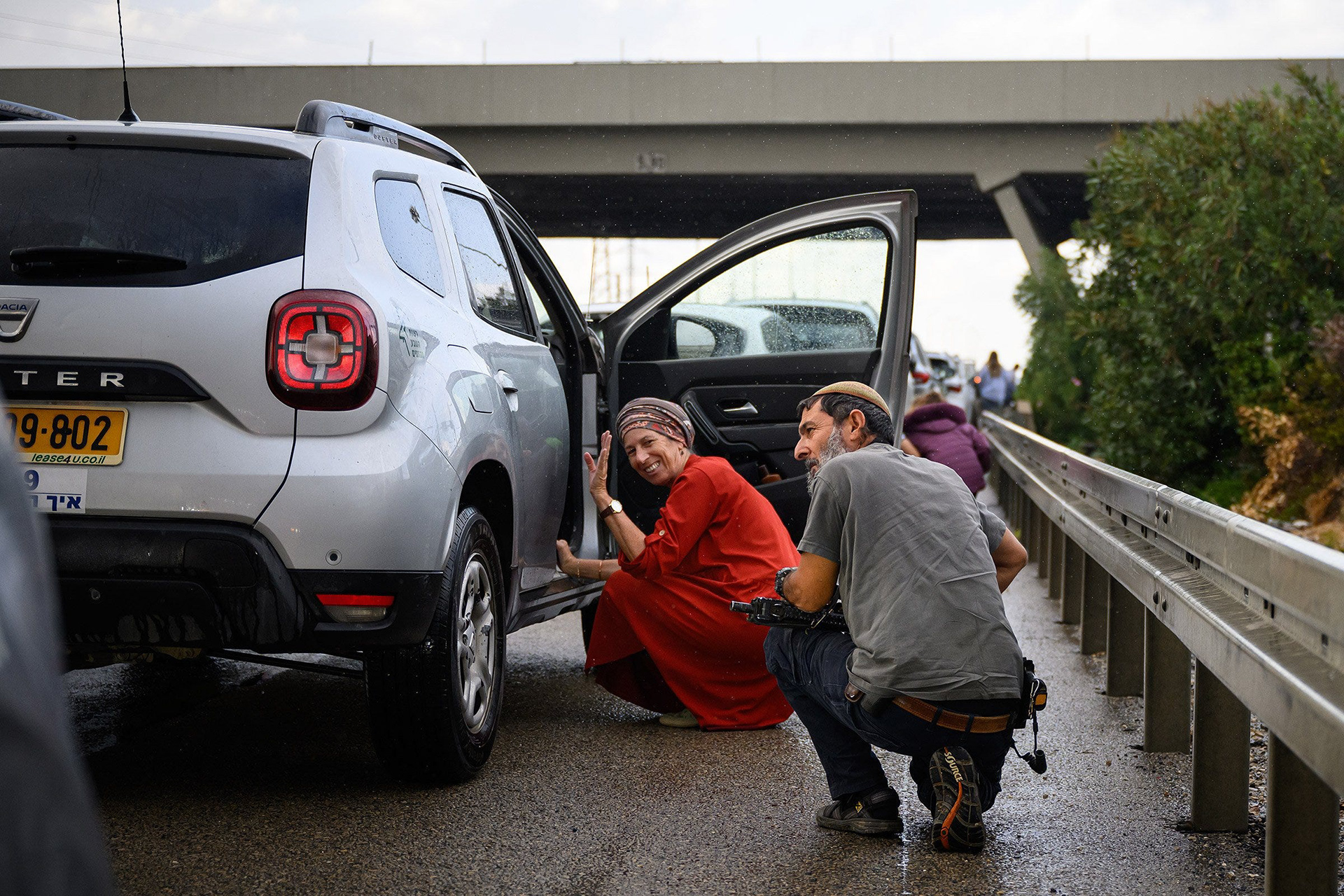Heading back into Tel Aviv, streaks of smoke slit the clouds as Iron Dome missiles intercepted incoming rockets. Stopping on the hard shoulder, the woman from the car ahead cheerily waved and smiled for a photo as she sheltered.