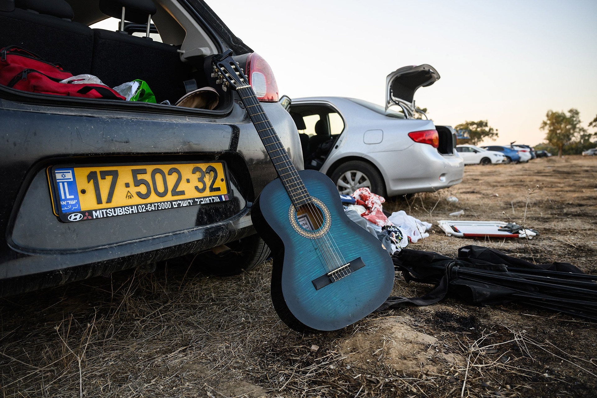 It’s very hard to put into words how it felt to be there. All around, the everyday signs of festival life littered the floor, destroyed cars sitting where they’d come to a standstill, many with keys in the ignition, personal effects strewn around the seats. In some, evidence of the horrifying physical violence that took place was clear to see, sprayed across the dashboard.