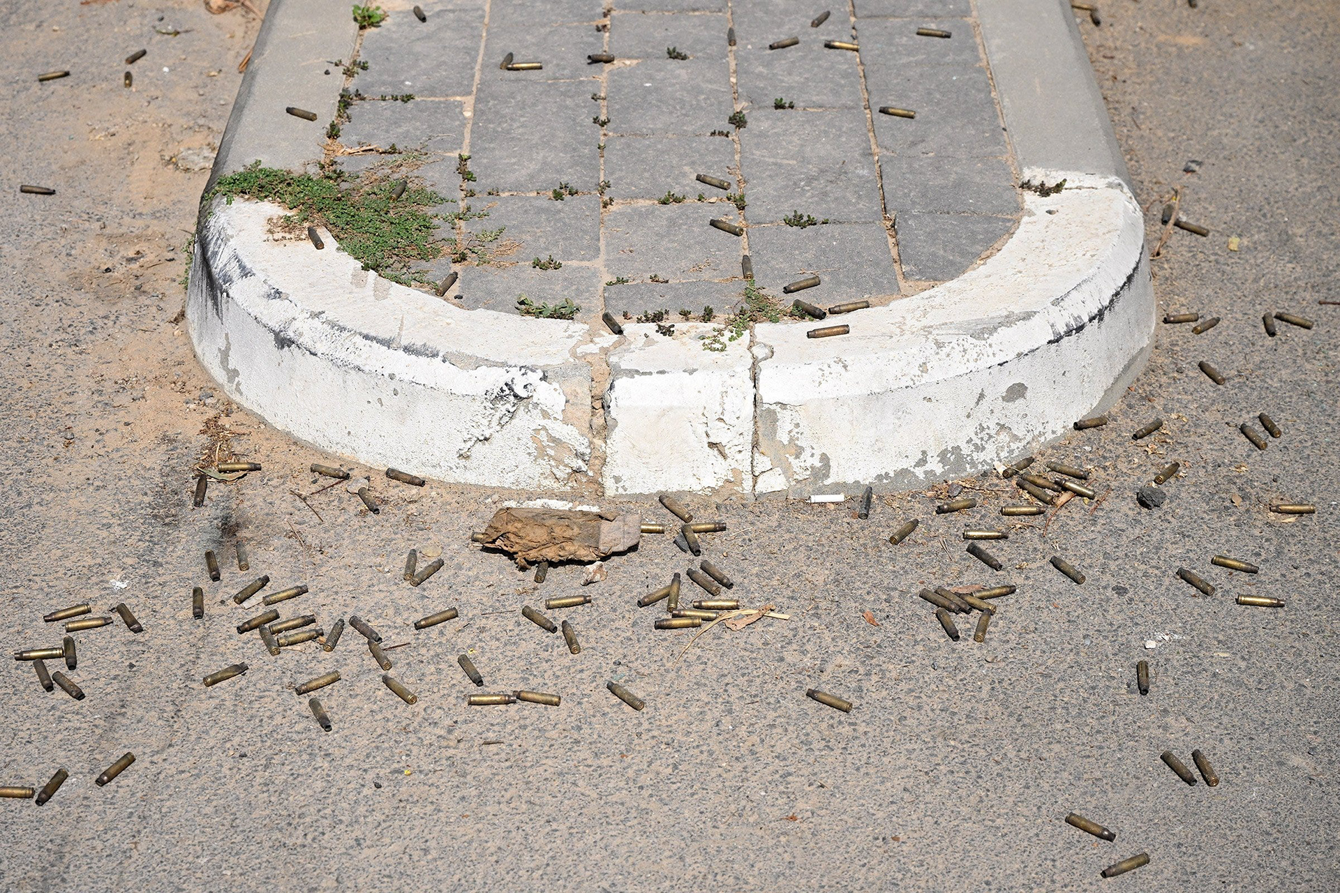 Into the evacuated town of Sderot, and soldiers are now out at major junctions checking ID and monitoring traffic. A roadblock finally prevents access beyond a deserted shopping mall. Passing the time, I wander into the car park and everything looks normal until you look down and notice spent shell cases every few steps, a reminder of the intense firefights that the area witnessed.