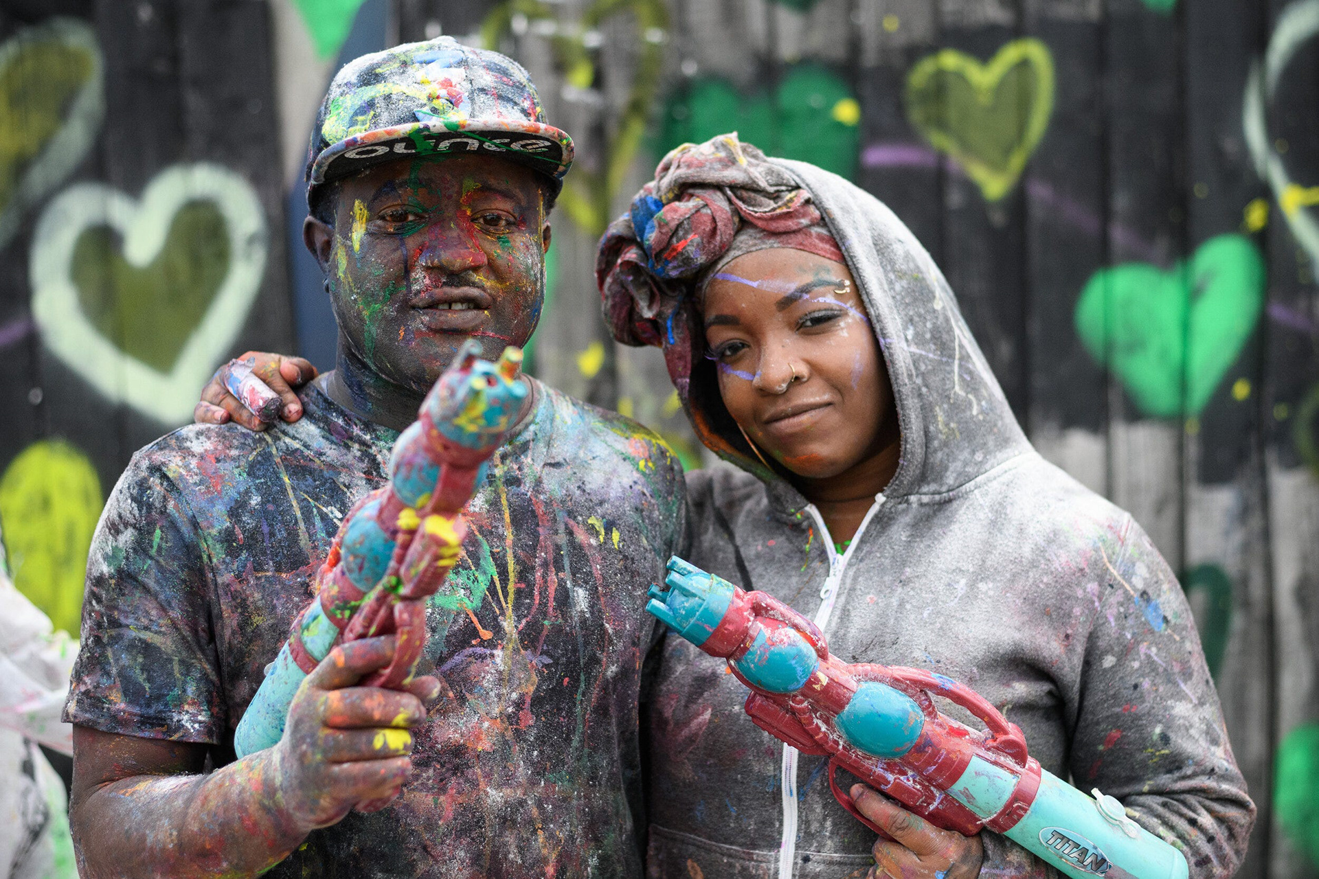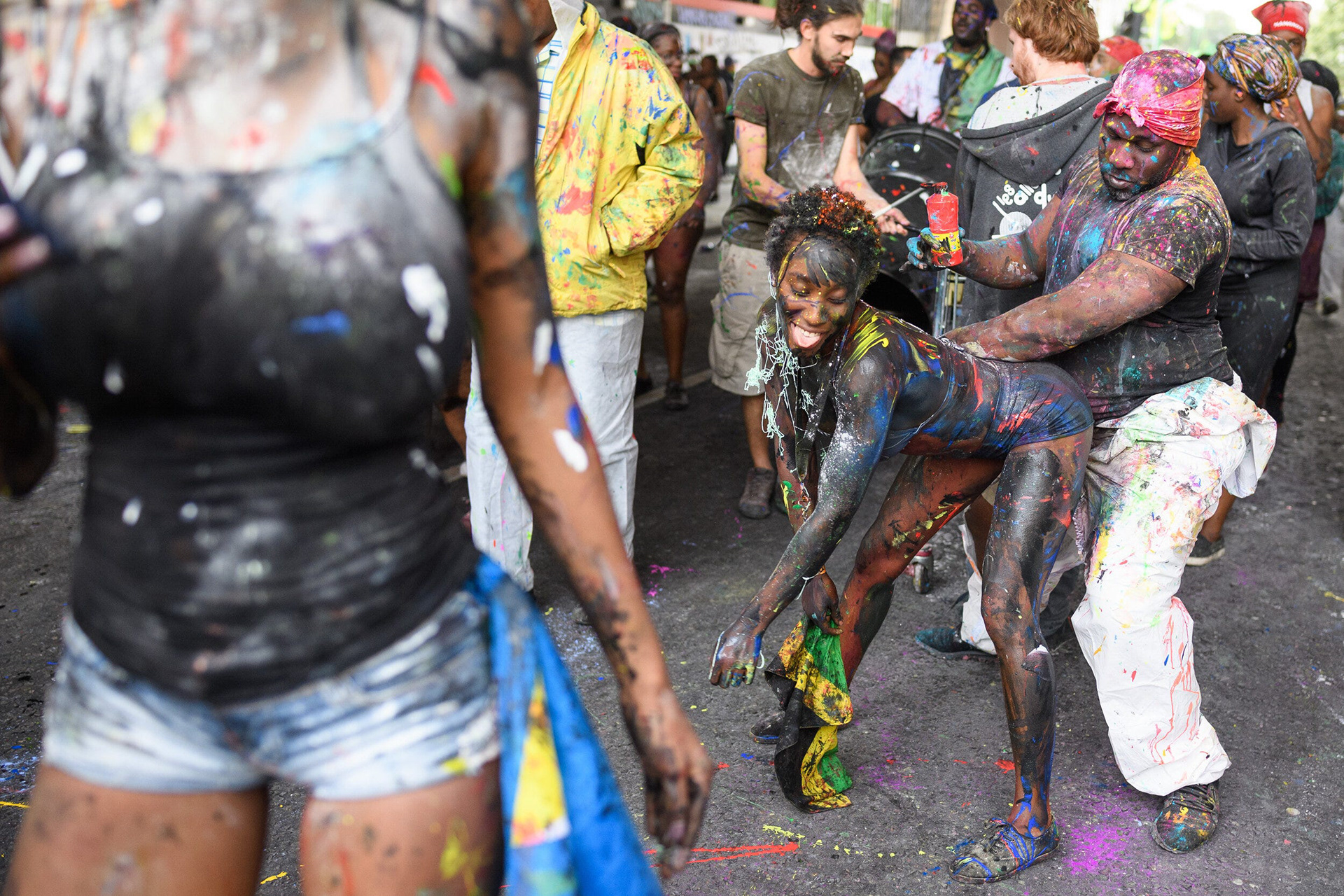 The celebration is the traditional opening ceremony of the carnival with people gathering before dawn to take to the streets and go to war against each other, albeit armed with the unusual weapons of flour, melted chocolate, talcum powder and, of course, paint. Lots and lots of paint.