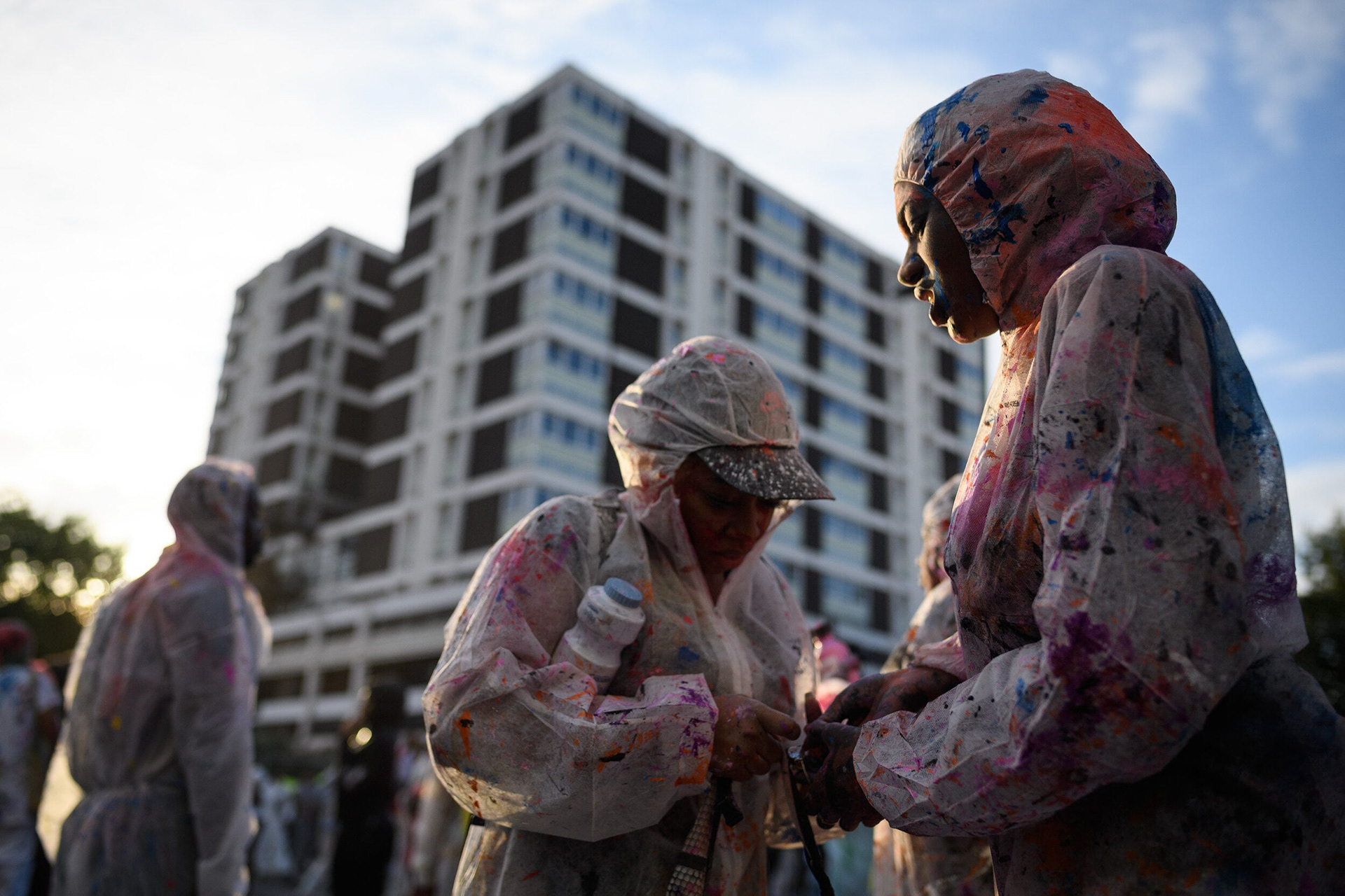 Being the lovely chap that he is, he had a spare mask for me to counter-act some of the talc, flour and powder paints filling the air. While my cameras survived reasonably intact, the same couldn’t be said for the new Thinktank Shapeshifter V2 camera bag that they’d only just sent me. Ever the optimist, I like to consider it as a prototype from their incredibly rare new “Jackson Pollock” range of bags.