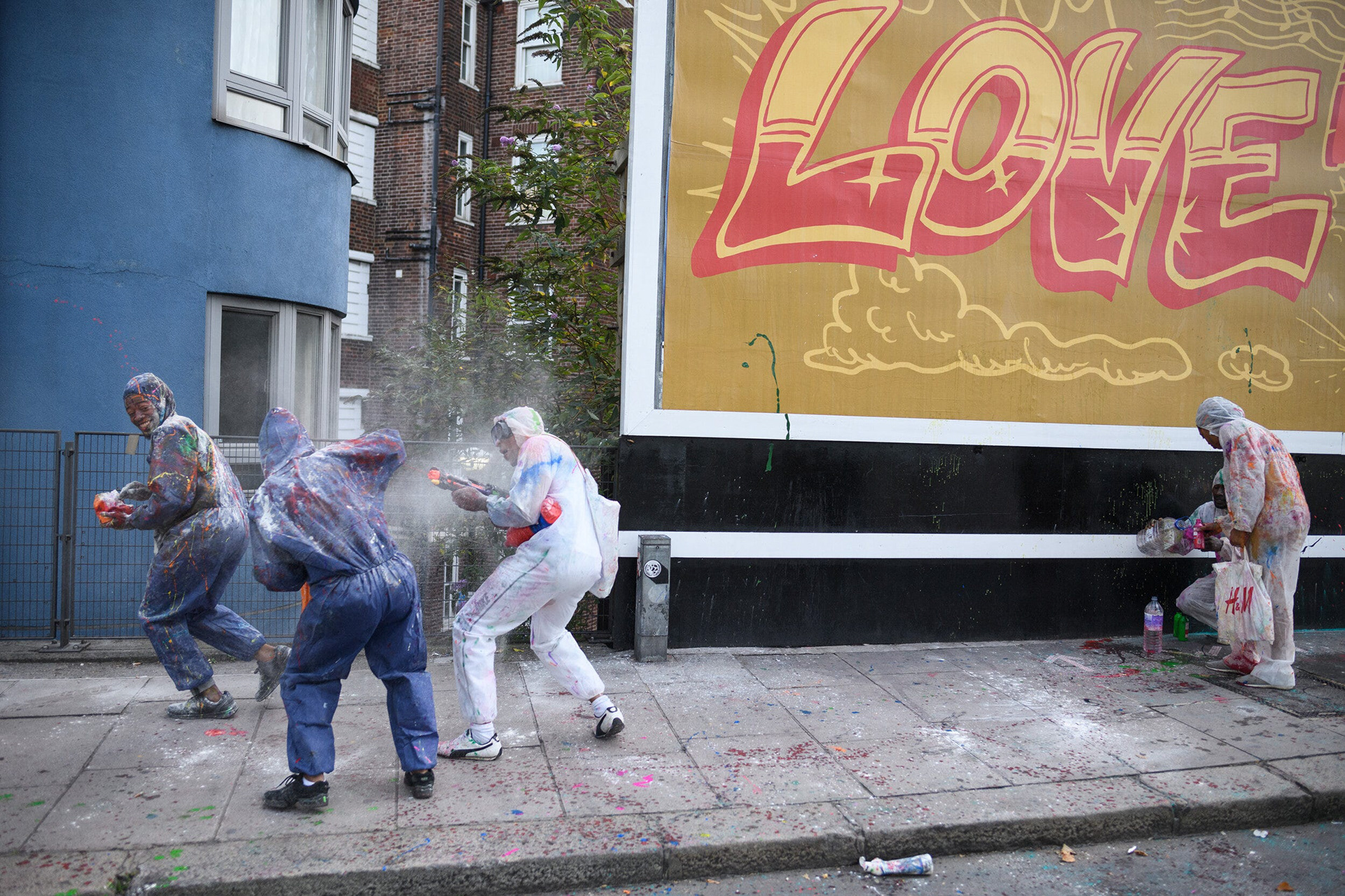 Knowing from pictures I’d seen from previous years how messy it was going to get, I thought I’d prepared pretty well, wrapping my Nikon D5 cameras in a mixture of cling-film and parcel tape but after bumping into street photographer Matt Stuart, I realised I might have under-prepared.