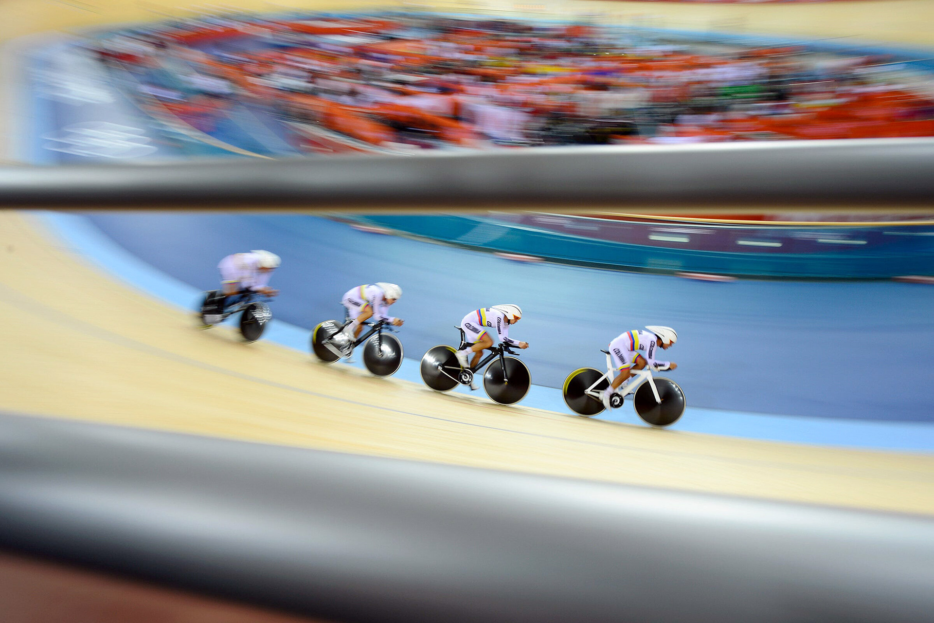 The highlight of the cycling for me came when Cycling team leader Carl de Souza offered me the chance to shoot from the infield. For those of you that haven’t seen velodrome cycling, the teams are all in the central area throughout the session. Rather than being behind closed doors, the workshop areas, athlete seating and waiting areas are all on full view to the spectators, but even better they are pretty much open to the photographers on the track. While it provides shed-loads of pictures, it also means you have to have eyes in the back of your head, as the finish line can be in one of two positions. There was scrambling, and frantic scrambling at that.