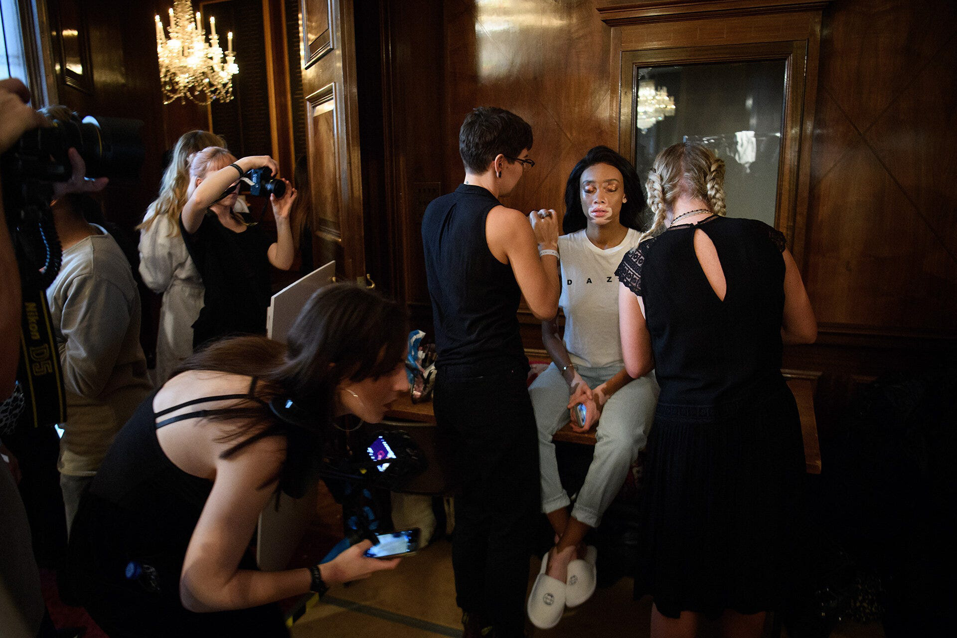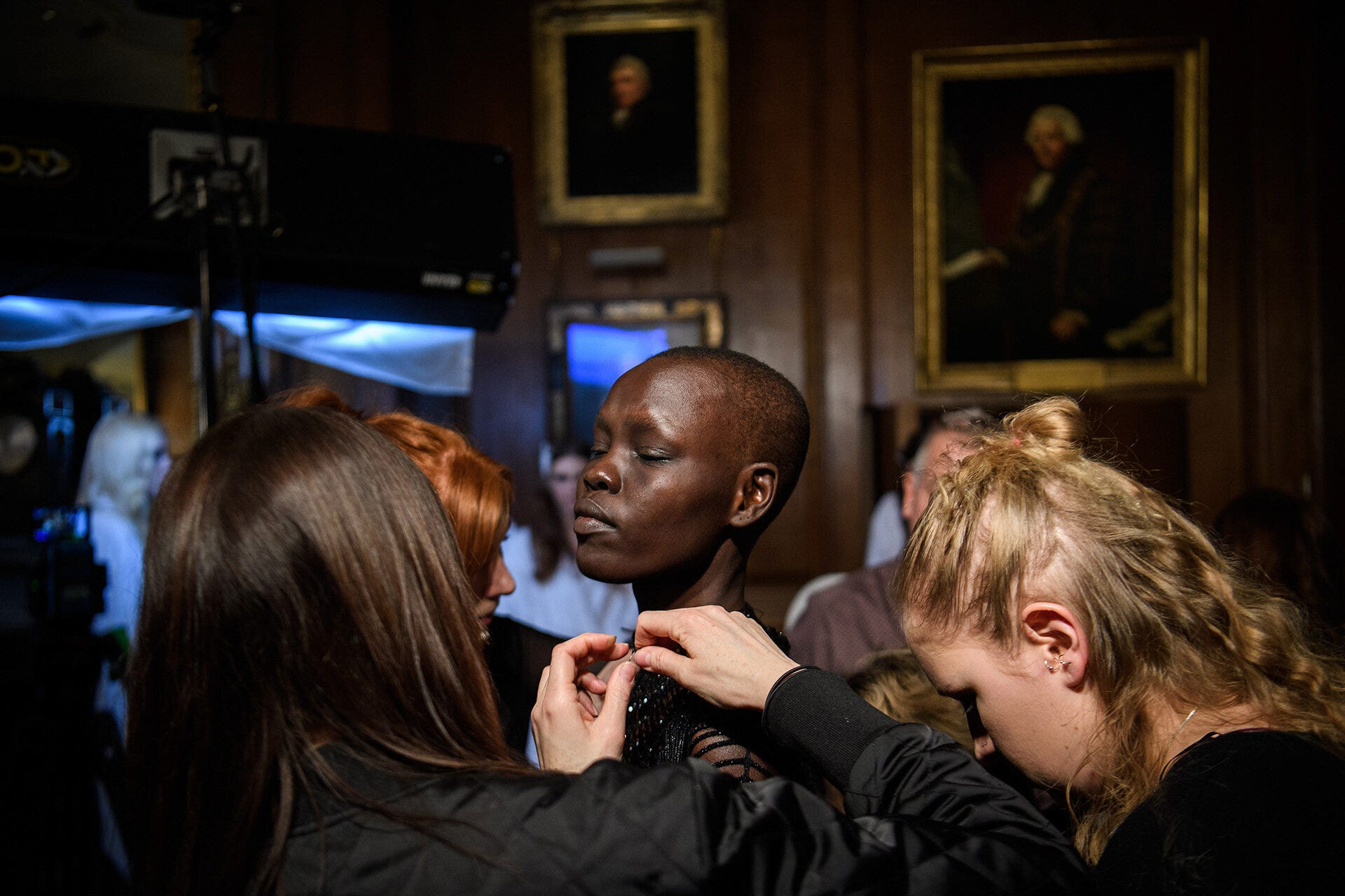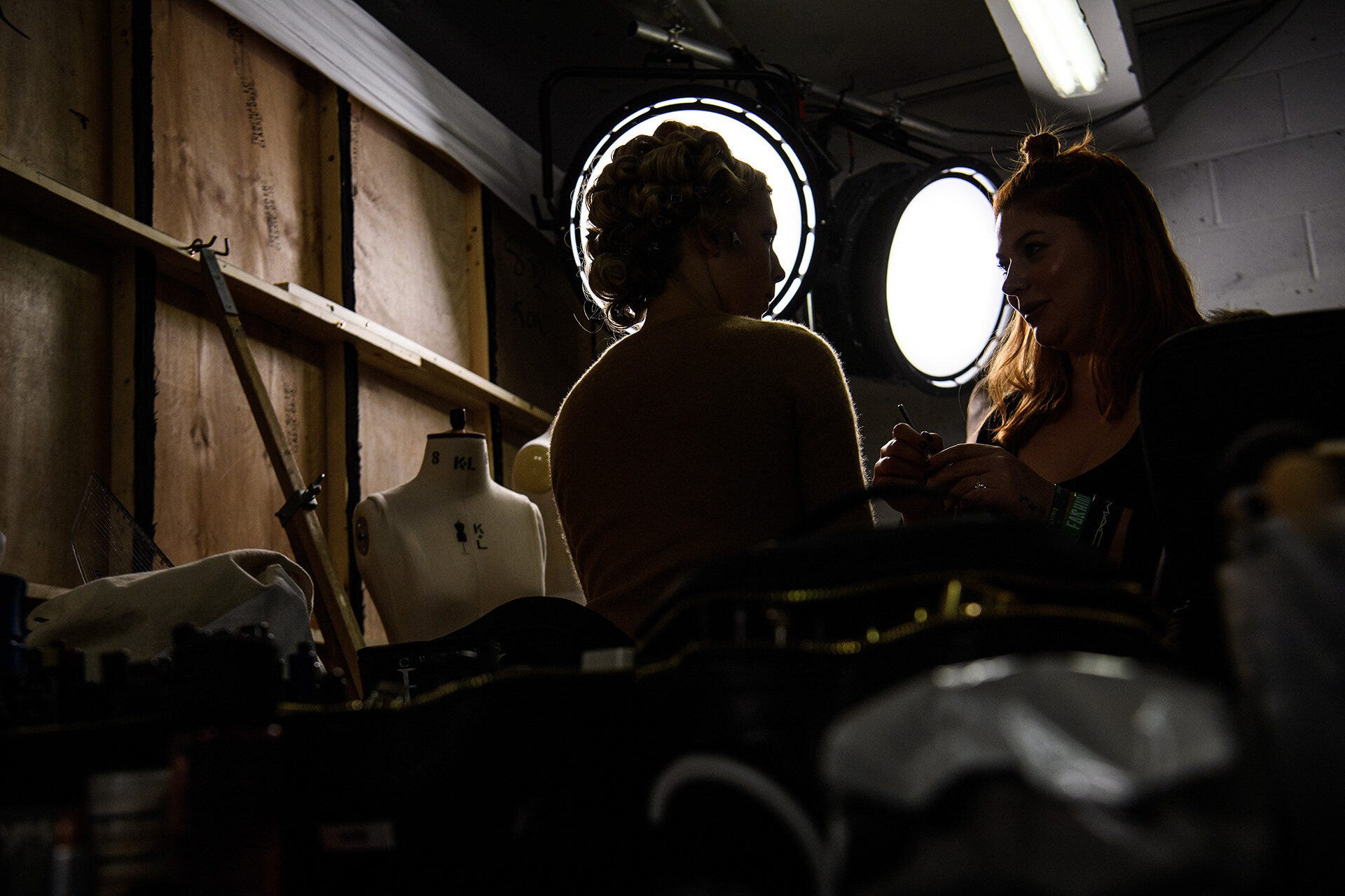 Next up, I headed to the beating heart of LFW; backstage. I never seem to learn the lessons of working in such close quarters. First up, travel light. Invariably, I’m laden with a motorbike jacket, a backpack and various other odds and ends so, within minutes, the beautiful creatures in their shiny creations are having to work with a sweating mass of photographer, squeezing between the make-up tables. Secondly, bring your own light. It’s invariably pretty dark, so the photographers that work backstage all of the time carry ring-flashes, soft-boxes, LED light bars and often a second person to hold all of that while they work. Flying solo, it was a case of finding the light, pushing the ISO and seeing what I could do.