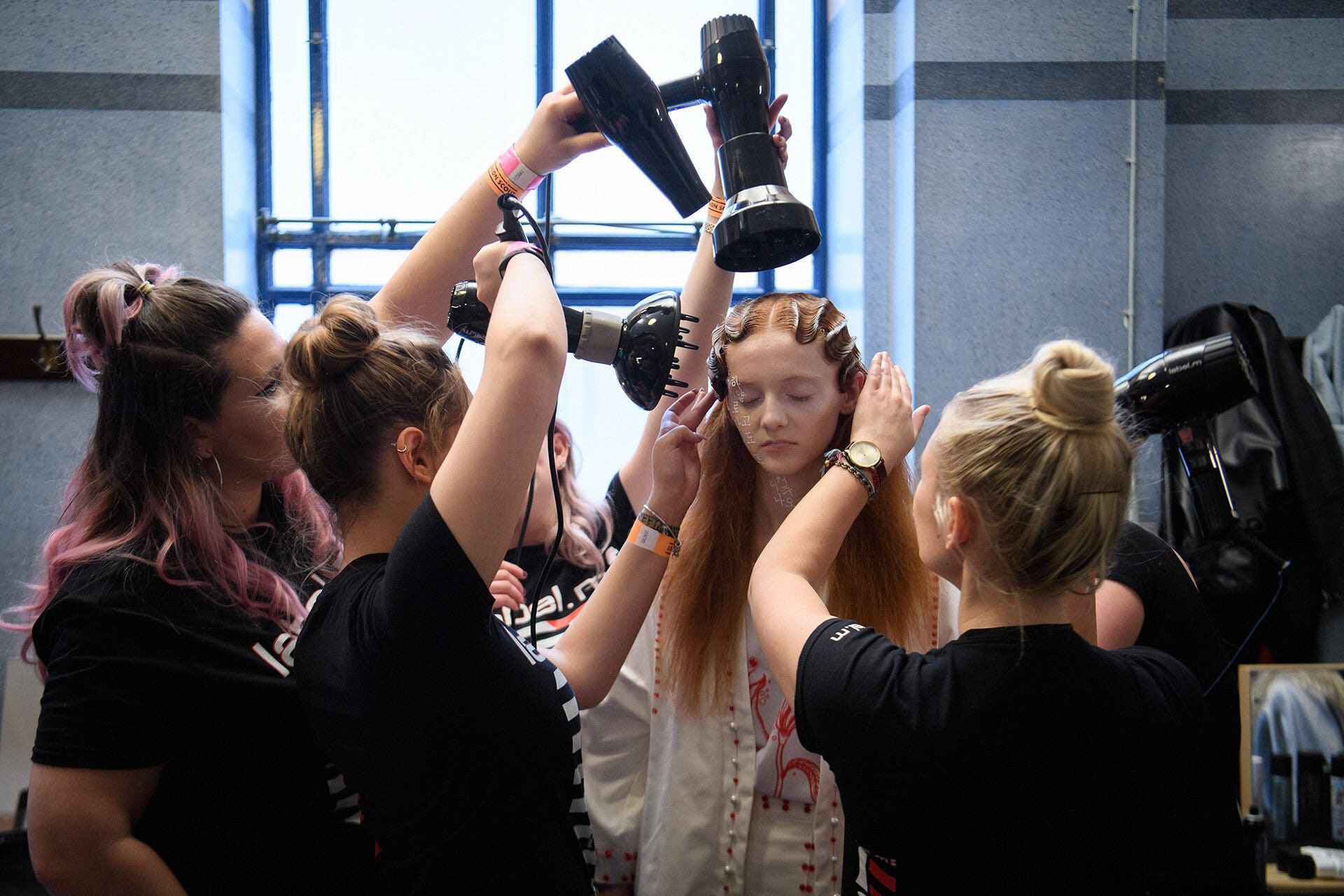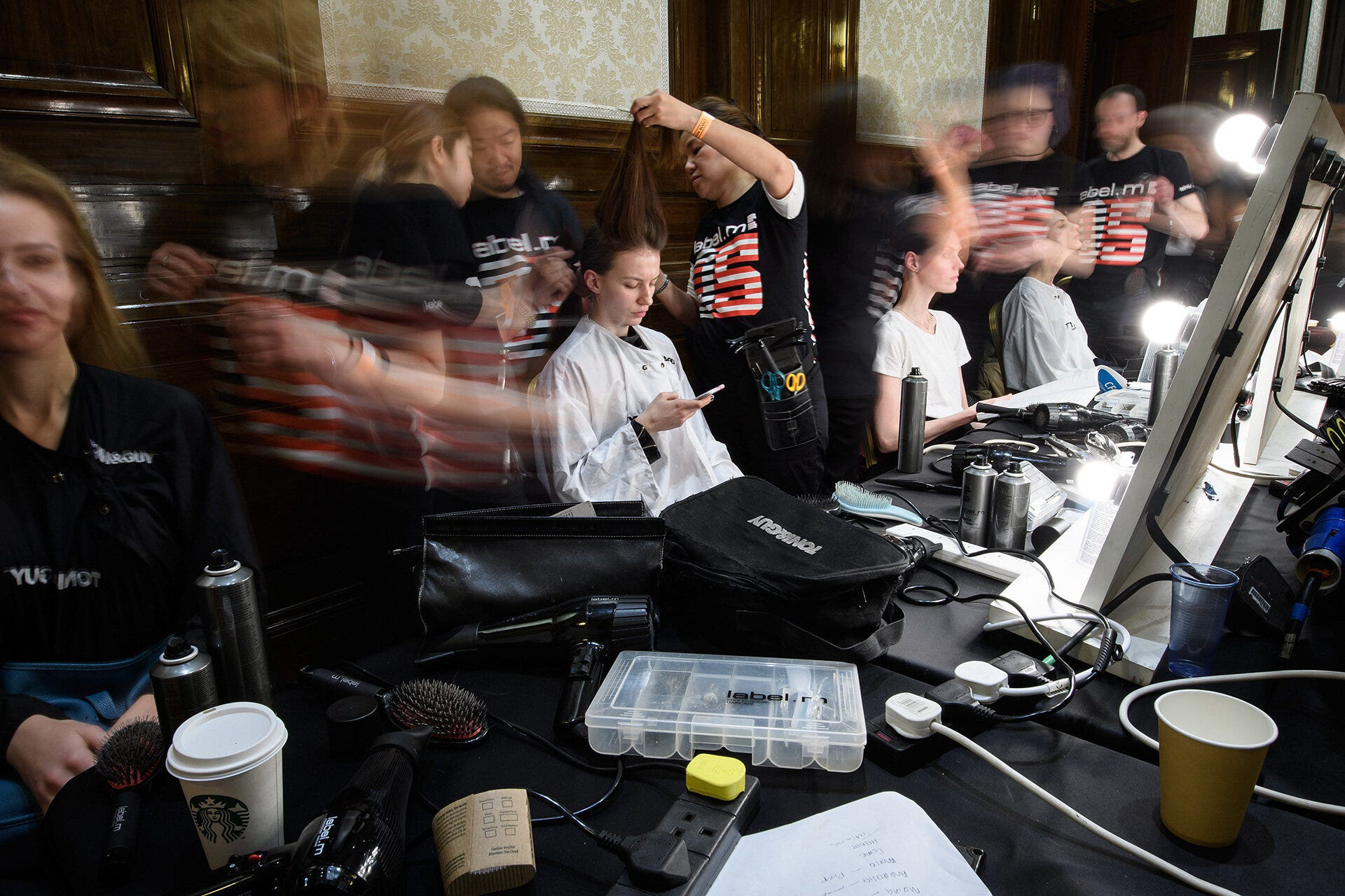 The models are invariably in their own soundproof world as they listen to music on their phones or happy to wink, pout, smile or smoulder for the long procession of photographers looking to get something a bit different. It can’t be much fun to go through all of that for the fifth or sixth time that day, all while having your hair tugged and your eyelids painted.