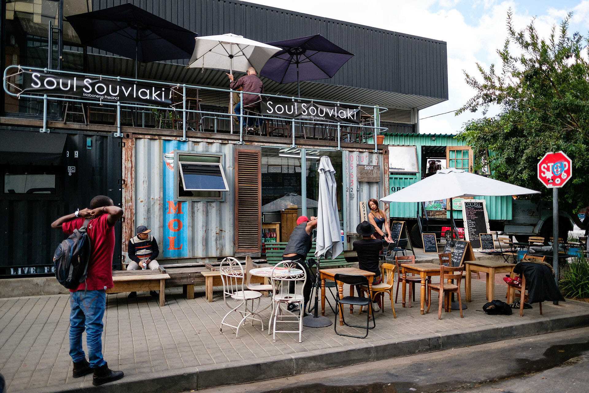 On landing, I headed straight out for a scout around Johannesburg. Finding myself in an independent store and restaurant area called “44 Stanley”, I stumbled across the JoziHub “co-creation” centre, where young people get the chance to work, network and find their feet as they launch their start-up businesses onto the market. Companies such as online grocery delivery start-up eButler and the Conte Creatives advertising agency work side-by-side to try to crack the market and become the next big thing.