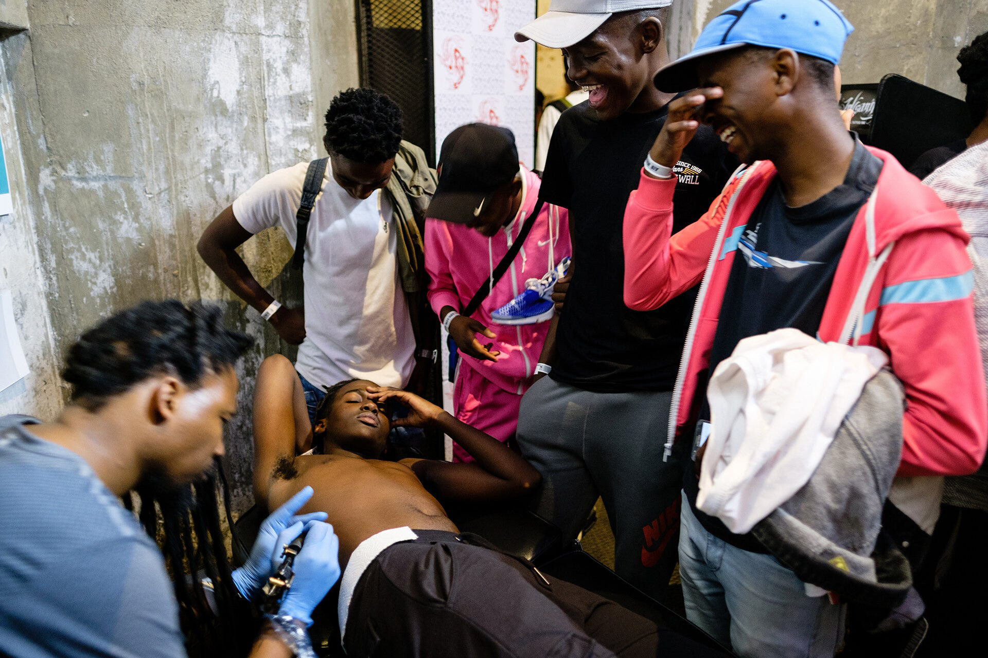 Next up, and it was back into the centre of Johannesburg for a party to celebrate the anniversary of a famous model of sports trainer. While the event didn’t make many images, it was certainly eye-opening to see the queue of people who were lining up to get free permanent tattoos of the company logo applied to their bodies. It’s all about the tag, y’all.
