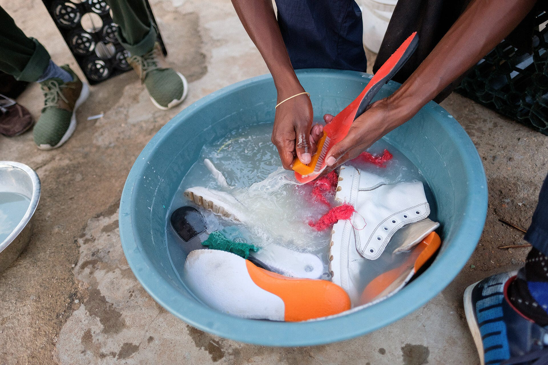 Lethabo Mokoena is an inspiring man. Living in the poor township of Daveyton, he started up his company “Walk Fresh” in early 2015 to provide a sneaker cleaning service to those in the area who wanted to look their best. Now, the company is doing so well that they’re moving from the rented front yard and a temporary gazebo, to permanent premises in a converted shipping container nearby. Showing me his current storeroom, shelves and surfaces in every direction were filled with neatly packaged, freshly cleaned trainers, ready to deliver back to their owners.