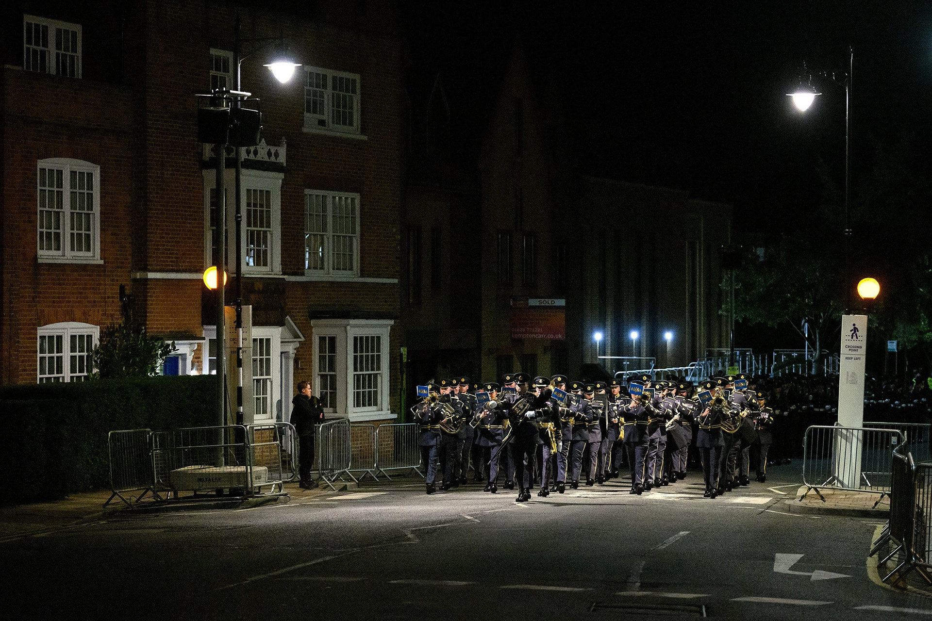 Hours before sunrise, members of the armed forces paraded through the streets of Windsor, in a final rehearsal ahead of Queen Elizabeth II’s committal. Brass bands marched towards the Long Walk to get into formation, as groups of revellers wrapped up their evening encounters and residents leaned from the windows, surrendering to the negligible chance of sleep.