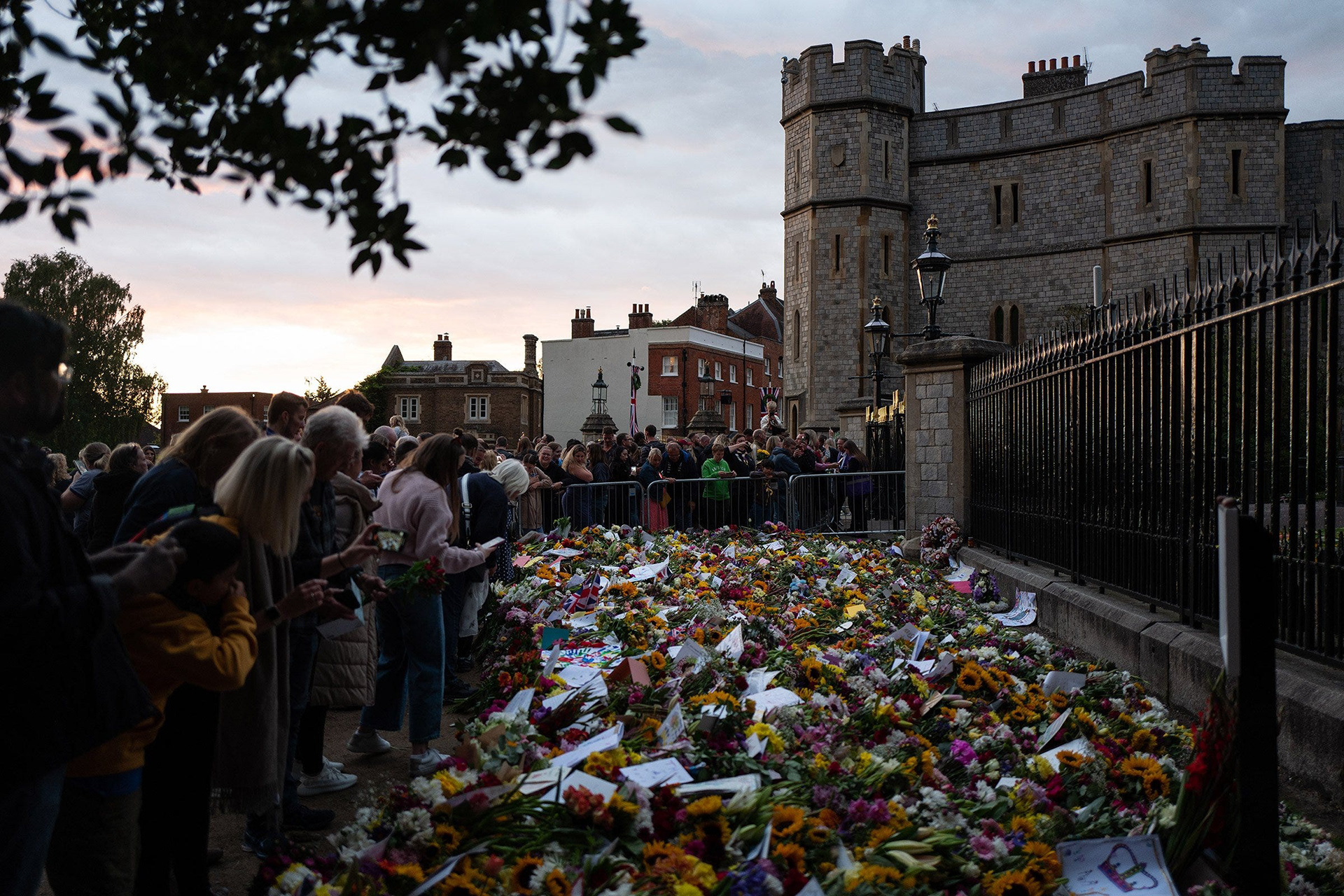 As my position was on a rooftop within Windsor Castle, I spent the previous evening with the well-wishers outside the gates as they came to lay floral tributes and read the messages left by others. As in London, queues soon formed to enter the Long Walk, stretching back through the town.