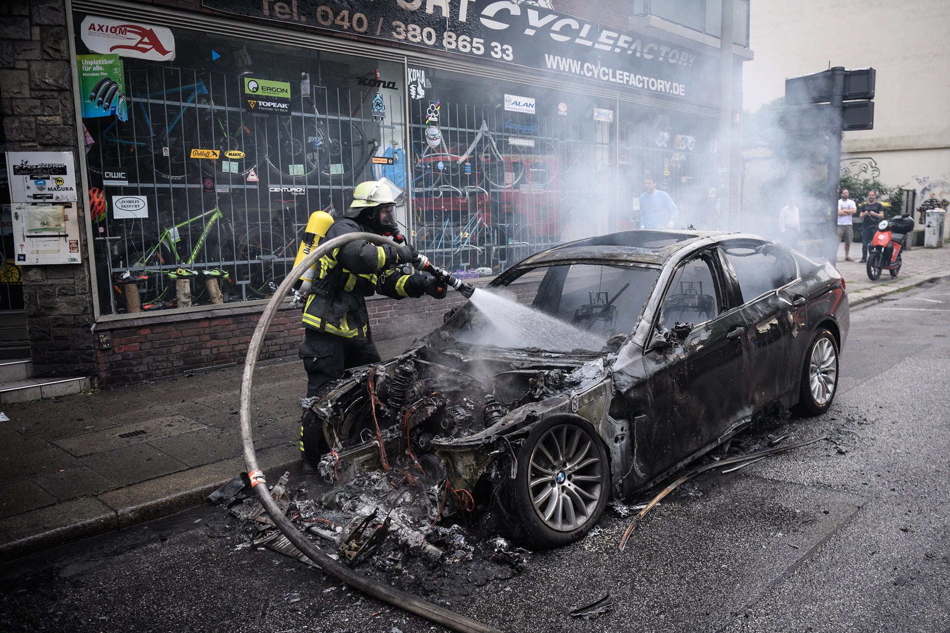 As my time to leave on Saturday arrived, I made one last visit to an area that had been hit hard by looting the previous night. Having checked out of my hotel, I was forced to drag my suitcase with me. As I photographed a damaged building, a woman stopped to talk to me in German. Explaining that I was British it was nearly a statistical certainty that I couldn’t speak any other language, she seamlessly switched to English and offered to look after my suitcase for me at her home and then provide me with breakfast when I came to collect it. To butcher the famous line by Blanche DuBois, I remain eternally amazed by the kindness of strangers. As the G20 summit attempted to show the harmony of the world, and those outside the perimeter fought to show that their version was the way forward, this simple act of generosity showed to me that human decency really is the very best way.