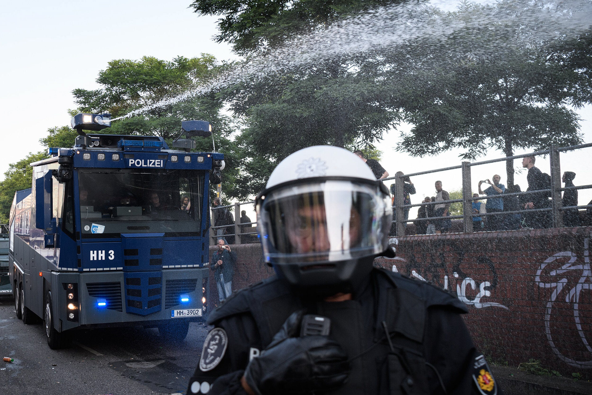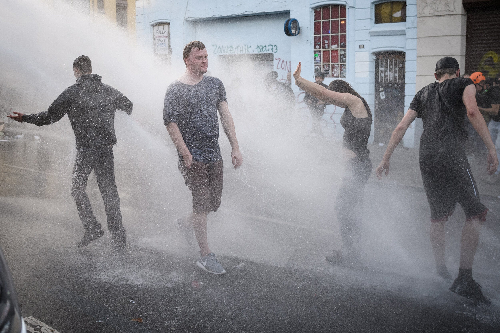 As the rioters took things up a level, the police matched them, becoming heavier with their responses and more liberal with their use of pepper spray and batons. Paving stones were broken to cheers from the crowds and fist-sized rocks handed out among the more aggressive front-line of the “black bloc”. In turn, the police charges became more indiscriminate with cameras and press identity cards failing to provide any protection from force. Two members of a British television crew were pepper-sprayed, despite clear identification and carrying broadcast camera equipment.