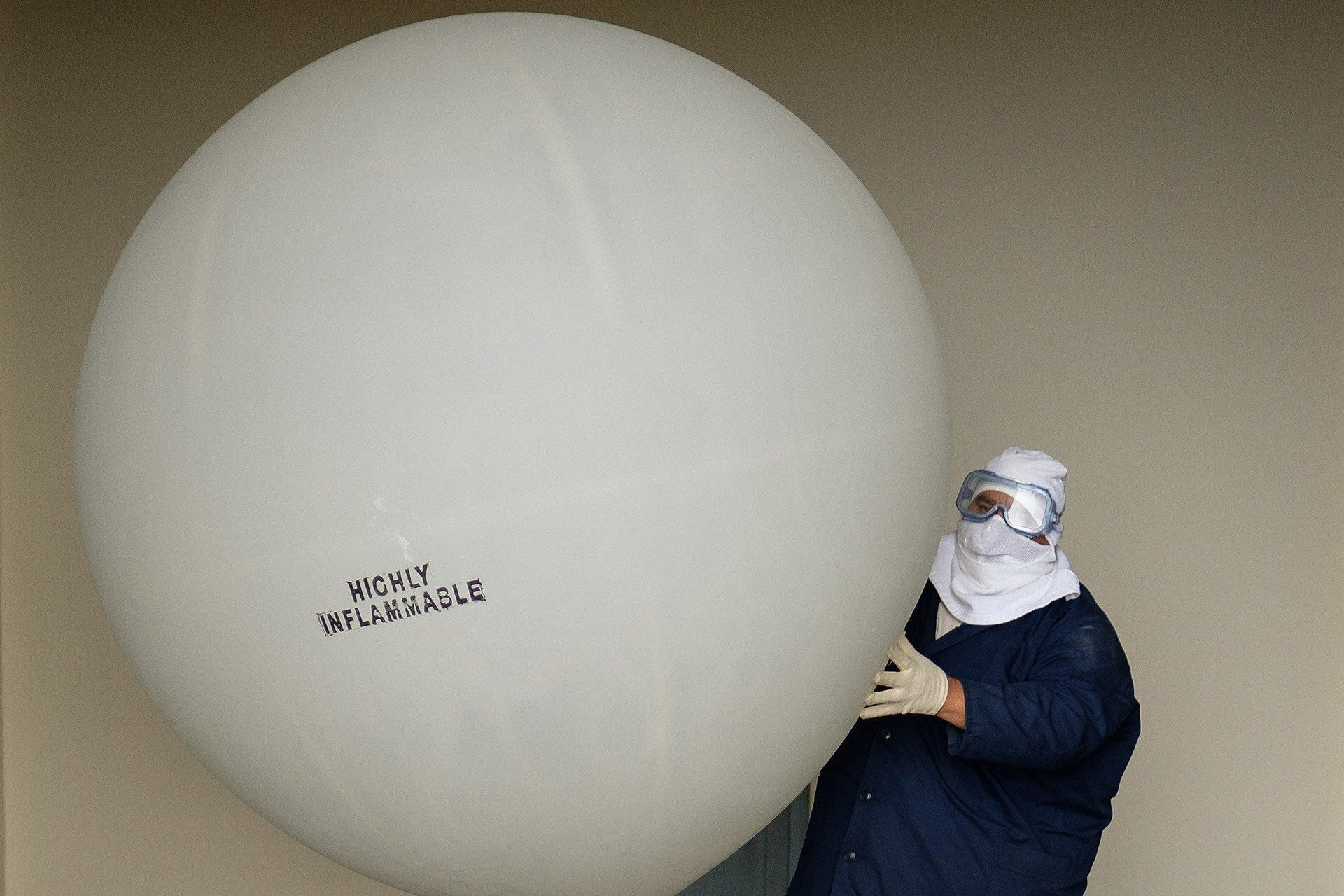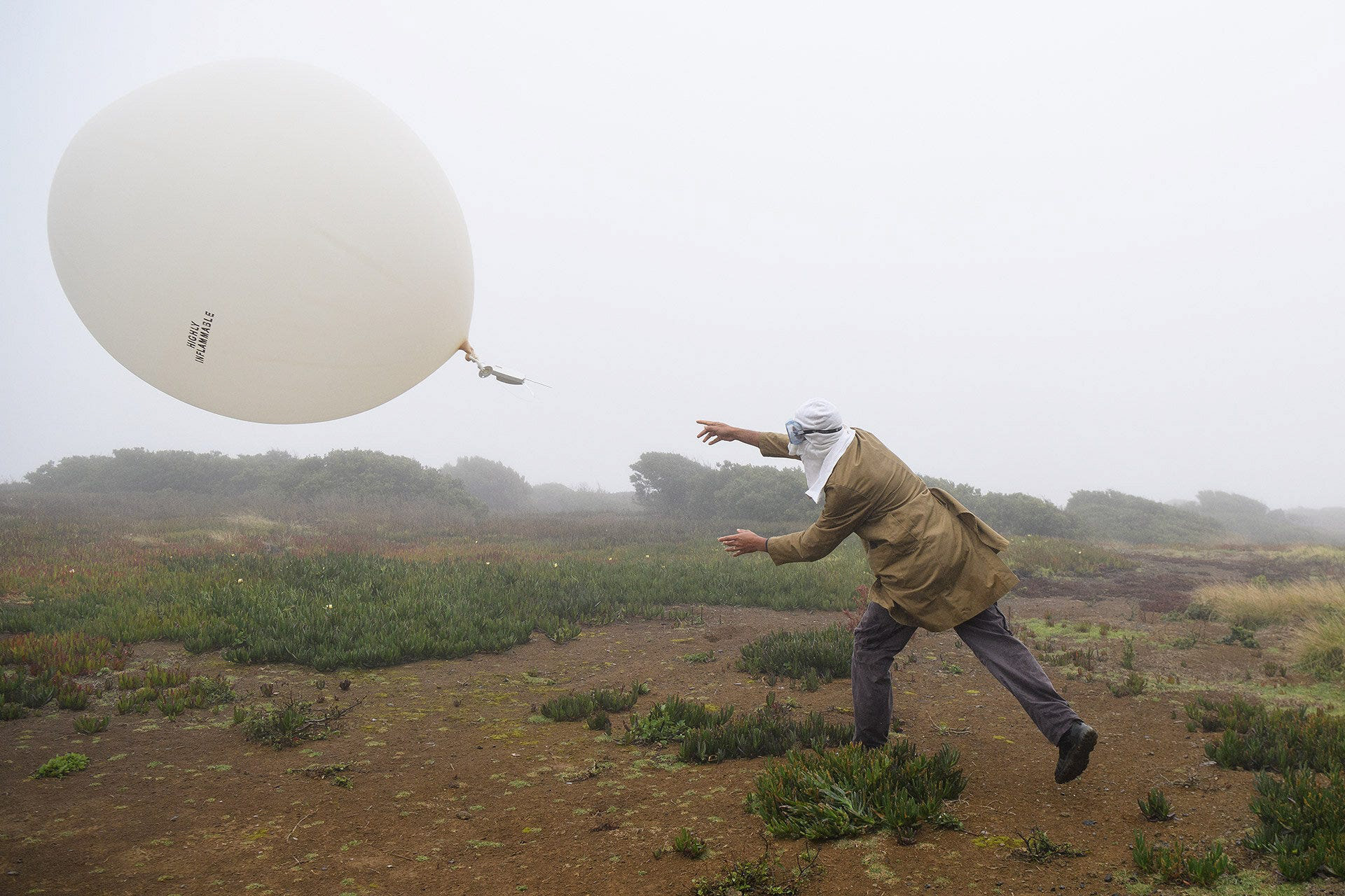 Having been told about photographer Jon Tonks’ book “Empire” before leaving the UK, I was aware of the weather station and the photo possibilities that it offered so I headed down to meet up with “Huggy Bear” and witness the daily weather balloon launch. Located near to the airport in Prosperous Bay, the Met Office weather station is on a desolate spot of volcanic land, with winds blowing between the pre-fabricated buildings and research stations. On arriving, Station Manager Lori Bennett led me round to the hangar where Garry Mercury (There’s a name for a meteorologist) was busy inflating the balloon with hydrogen gas. It should go without saying that I loved taking these pictures.