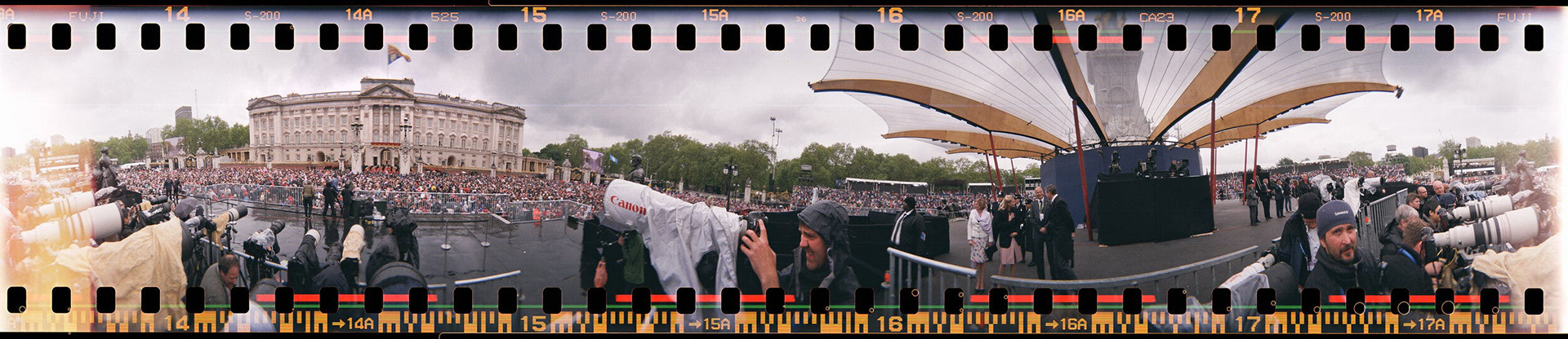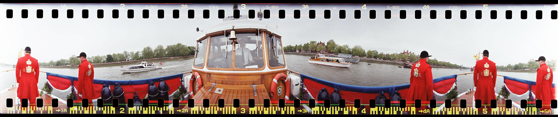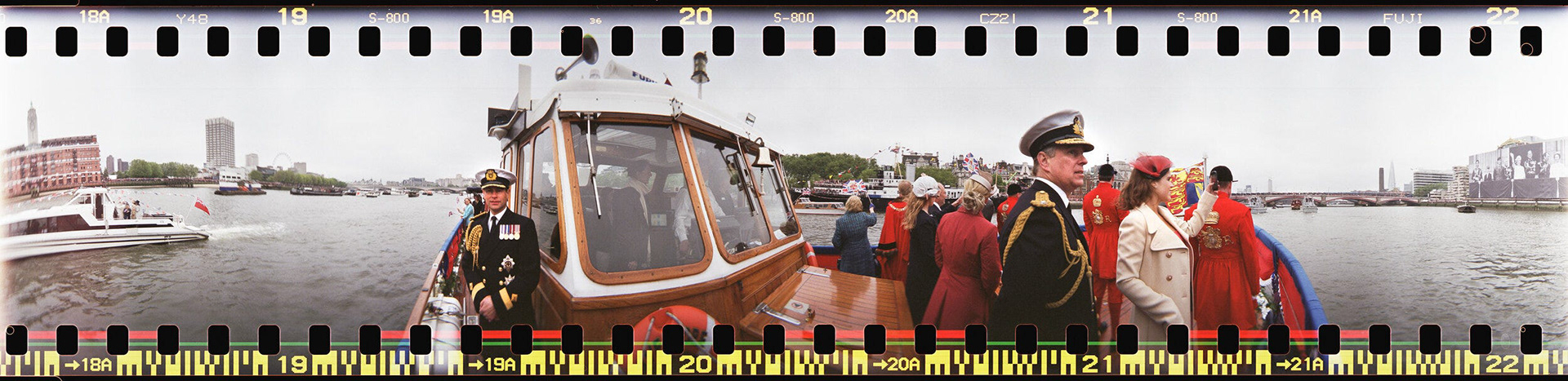 These photos were taken using the Lomography Spinner 360 over the Queen’s Jubilee weekend and while they’re not up to the quality of a proper high-end panoramic camera, they give a fun view of what went on. Capturing a full 360º of the area around you, the pictures take a bit of thinking about to properly comprehend. Imagine printing it out, joining both ends together and putting your head inside the tube you’d made. It’s a poor-man’s virtual reality suite! The fact that the camera is only £90 is a bonus! Prince Edward and Prince Andrew (below) were both rather amused to see me crawling around on the deck, looking like I was launching a distress flare from onboard the Havengore.