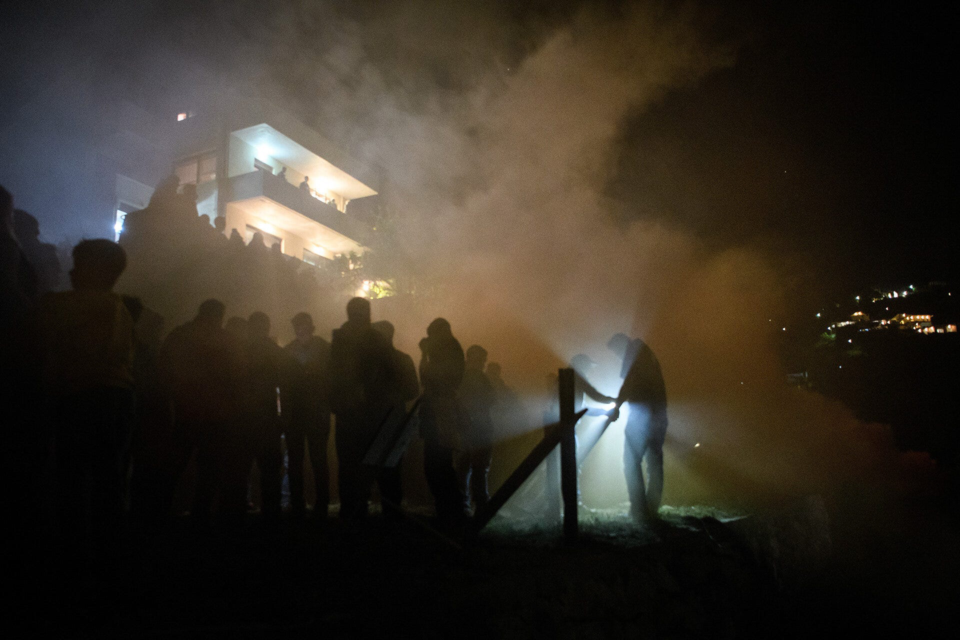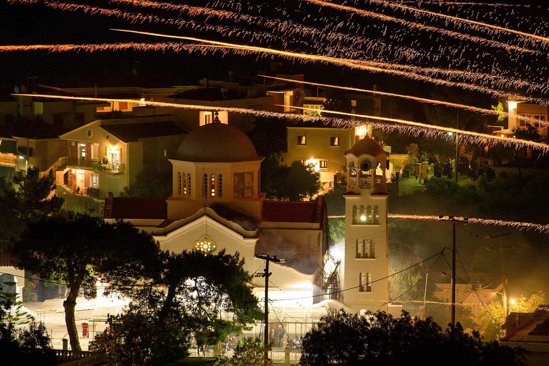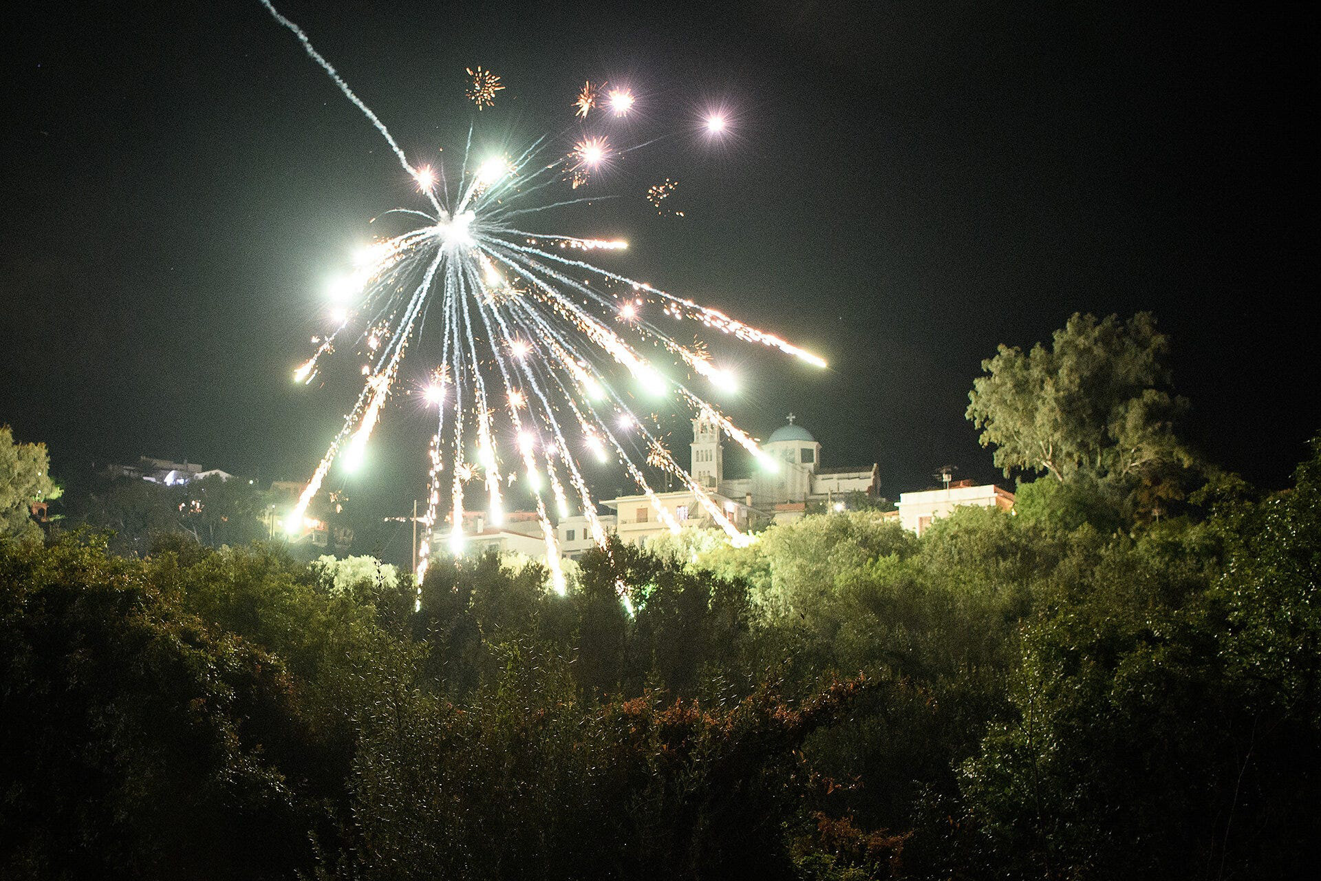 By the time that the rockets start flying, there was a blanket of smoke across the village and, thankfully, the weather was perfect with a beautiful moon reflected in the waters towards Turkey.