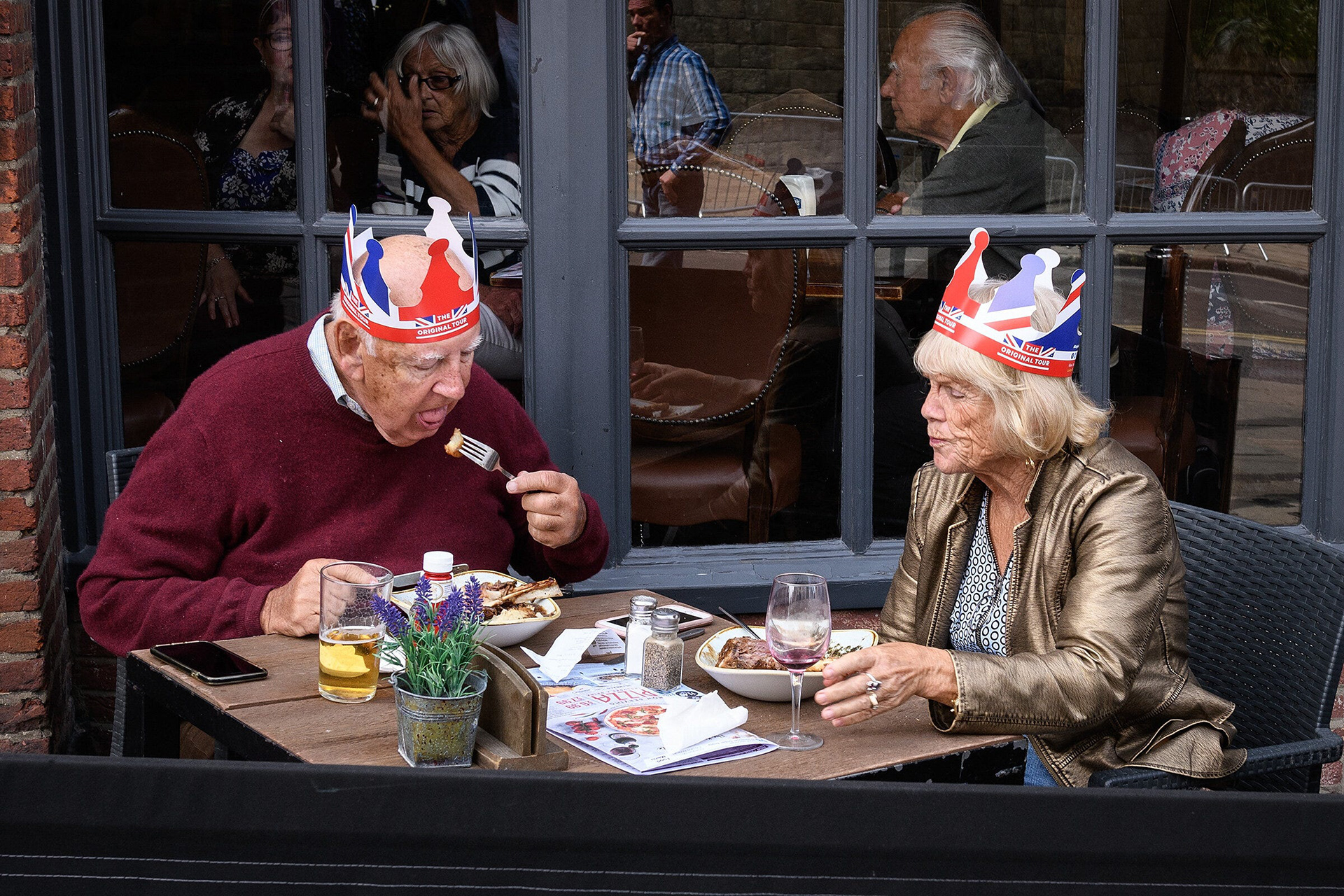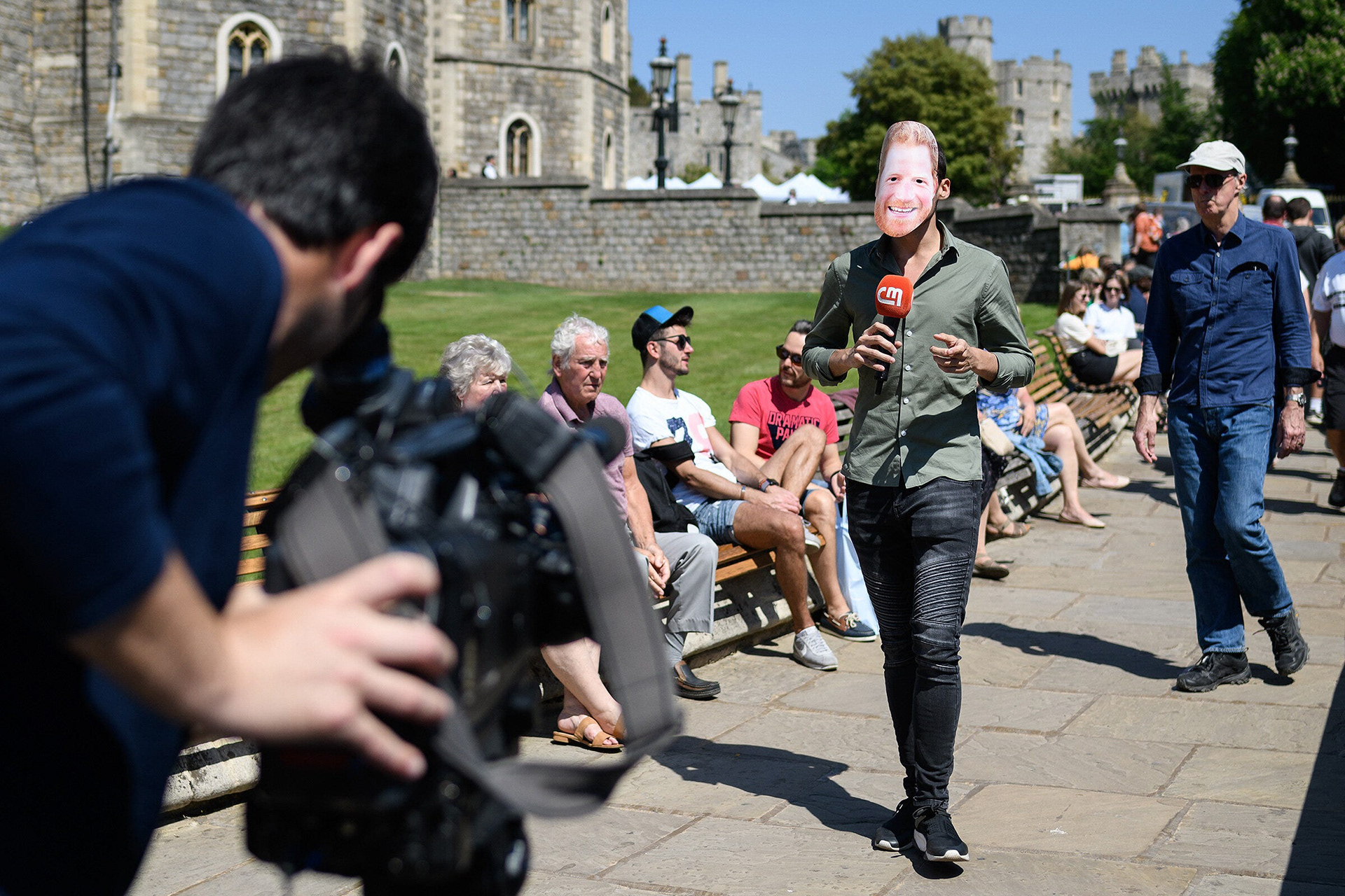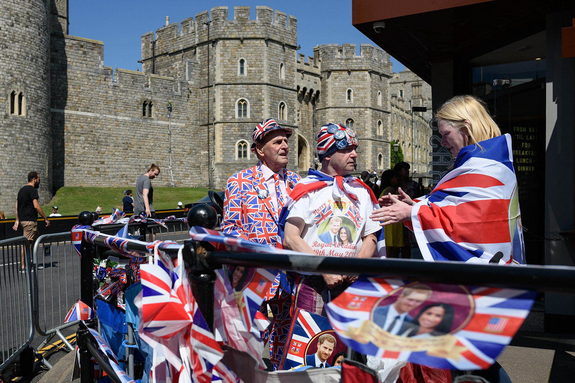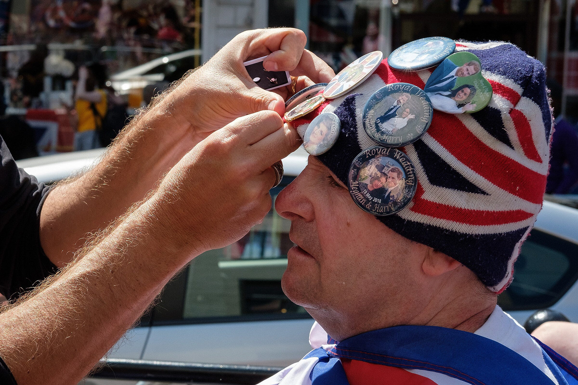 With the morning in full swing, Windsor was packed to the rafters with supporters, tourists and media teams, in a constant swirl of poses, interviews, cheers and regal fluff. Royal regular Terry Hutt held a prime spot on the first corner of the route and had a steady stream of international TV crews lining up to hear his words of wisdom.