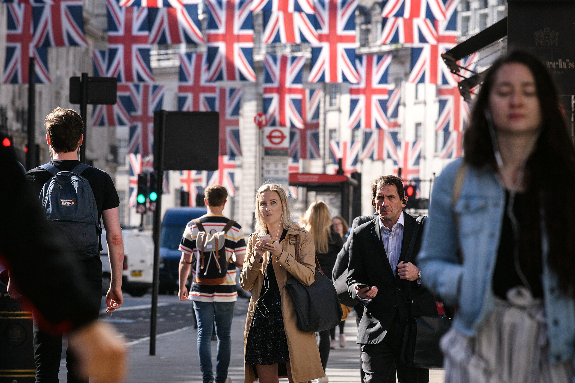 Meanwhile, above the streets of London, acres of red, white and blue guided the shoppers and commuters as they made their way through the central London streets.